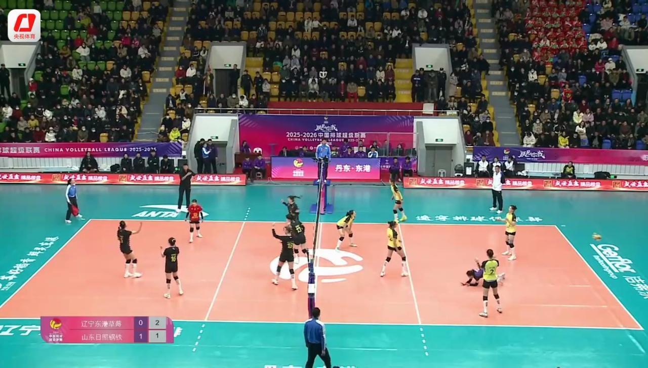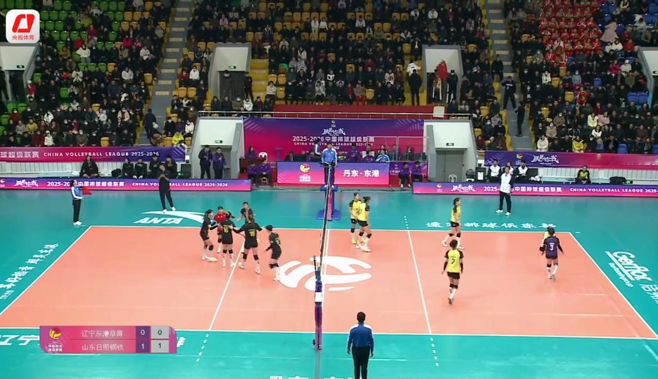 [女排超级联赛]常规赛:辽宁——山东 实时战况: 12月13日晚19:00时,全国女排超级联赛常规赛第一轮辽宁——山东的比赛在辽宁主场开打。第一局开始,1平,2平,3平,双方交替得分。4平,6:4,山东领先。7:4,8:4,9:4,辽宁第—次暂停。10:4,11:4,12:4,13:4,辽宁二次暂停。13:5,辽宁背飞。14:5,15:5,山东发球得分。16:5,17:5,17:6,18:6,杨涵玉。18:7,石冰彤。19:7,李晨暄。19:8,19:9,石冰彤发球。19:10,辽宁拦王文涵快攻。20:10,20:11,21:11,郭湘玲。21:12,杨涵玉被拦。22:12,23:12,郭湘玲发球。23:13,23:14,23:15,辽宁打手出界。24:15,24:16,25:16,山东胜第—局,大比分1:0,山东领先! 第二局比赛正在进行中……