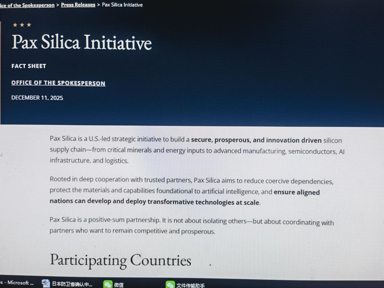 美国组建遏华共同体:"PaxSilica" 据美国国务院透露,美