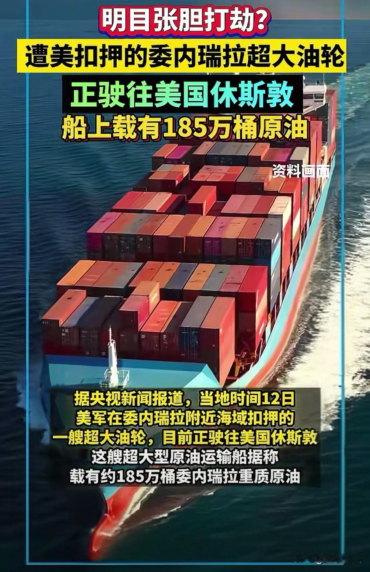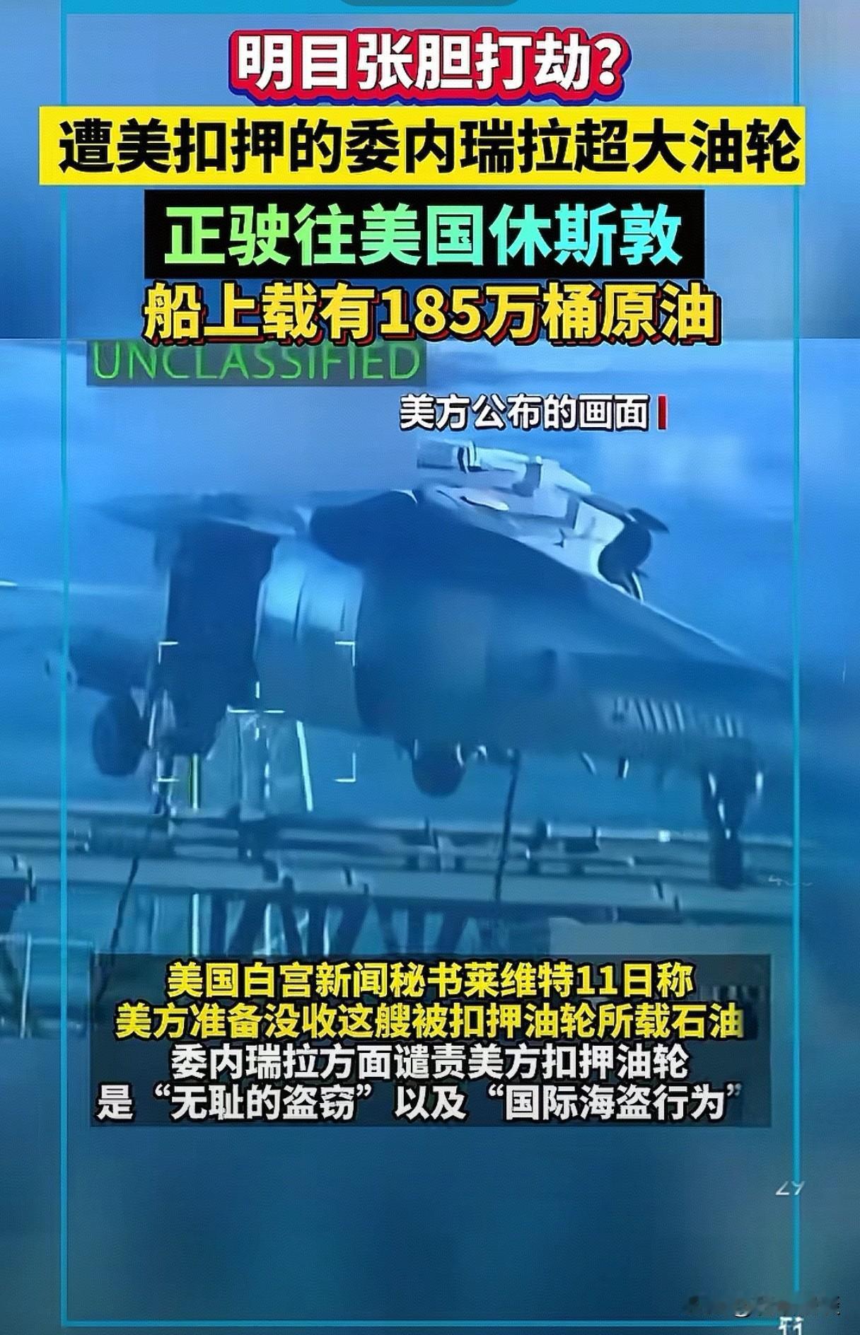 明火执仗,强取豪夺。 185万桶委内瑞拉原油的超大型油轮, 被美军“押解”前往休斯敦, 美军抢油现在连遮羞布都省了。 总统先生还兴高采烈地宣布, 美军扣押了一艘“非常大”的油轮, 并自豪地强调这是“有史以来最大一艘”。 当被问及这批石油的去向时, 答:“我们会留下它。” 委内瑞拉忍泪控诉: “无耻的盗窃”。 总统先生在宣布这桩“大买卖”时, 还神秘兮兮地留下悬念: “还有其他事情正在发生。” 世界屏息以待, 不知“加勒比海盗”, 又在密谋什么“大买卖”。