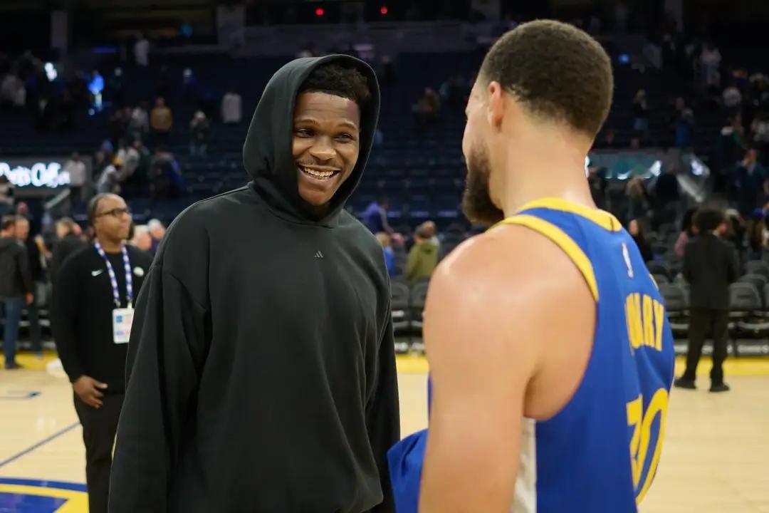 当库里投进一记又一记三分球,帮助勇士缩小和森林狼之间的比分时,森林狼球星爱德华兹在板凳席兴奋的手舞足蹈,这让勇士球迷有点懵圈:“难道爱德华兹要加盟勇士了吗?” 事实上,库里今晚穿的正是爱德华兹二代球鞋,可能是库里想玩个梗,穿着华子的鞋,击败华子的球队,可惜玩砸了。 至于华子的兴奋,是自己喜爱、尊重的球星库里,居然为自己的签名鞋代言,这不是免费的促进球鞋的销量嘛! 赛后,这俩人又在窃窃私语,估计在互相调侃,peter脑补下对话: 华子:“库哥,你没装成啊?要不我回头出三代球鞋,再送给你一双,再次打我接着穿?” 库里:“华子,你的鞋看来不咋地啊,影响我三分的准星,回头我得在社媒说下,这质量有问题。”