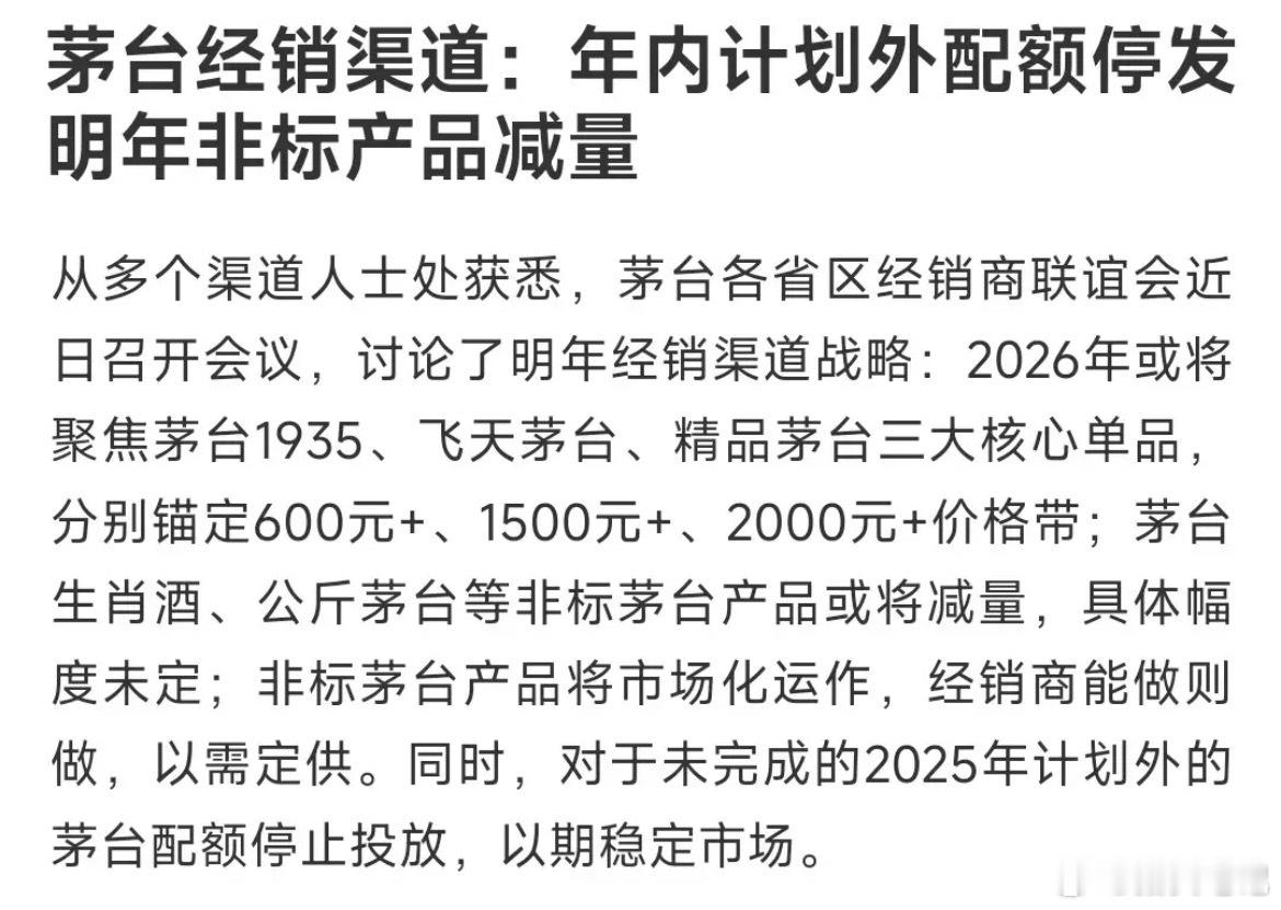 茅台出手救市!主动控量稳价,酒价跌势有望刹车今年酒类市场有点惨,飞天茅台更是跌不停,从年初两千多一路掉到官方指导价1499元,现在不少经销商都低价甩卖,已经跌破指导价了。今天茅台终于出招自救,发布新规收缩供应:经销商固定供货后,年度自动补货直接取消;还要求明年少推非主流款茅台,帮经销商减轻亏本库存压力,集中精力卖飞天茅台这类好走量、能稳价的主力产品。说到底,茅台就是靠主动调控供应量给价格“托底”,避免继续跌下去。