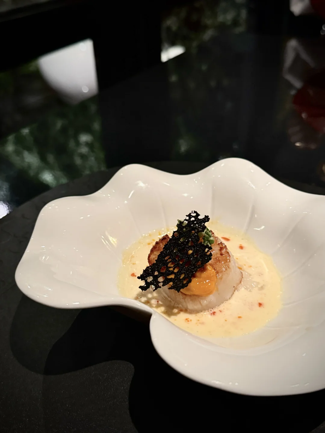 海胆扇贝配上特制酱汁口感丰富很鲜甜
