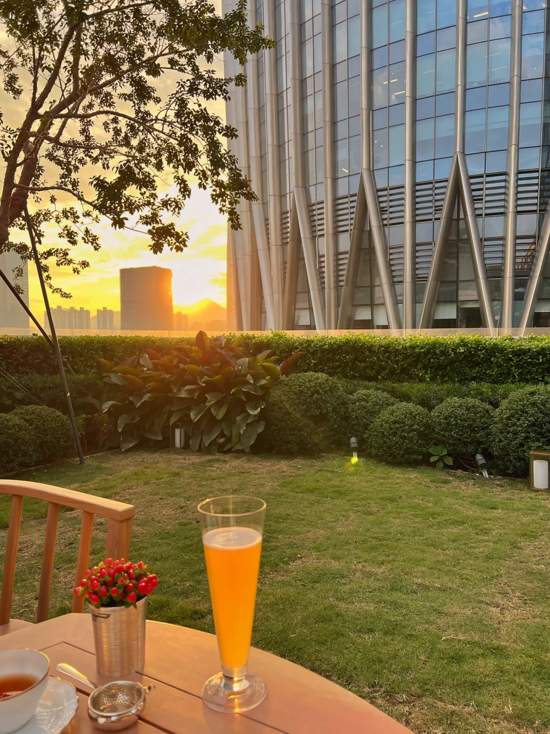 🧡店名: 谧园Veranda - 周末下午和姐妹在万象城逛累了来谧园打算喝个下午茶 没想到下午茶已卖完了 只好在一楼咖啡店点了蛋糕送上去 - 这里看日落很美 现在天气也转暖了 非常适合做室外聊聊天哦 - ⏰时间: 11:30-22:00 - 📍地点: 广东省深圳市南山区科苑南路2600号深圳湾安达仕酒店6层 -