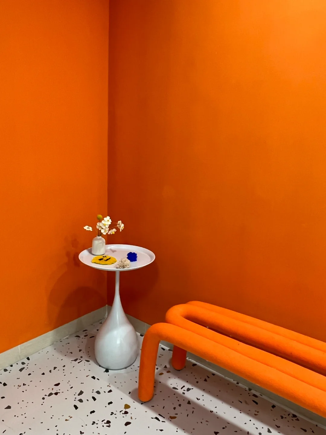 被其橙色背景墙和镜子吸引来