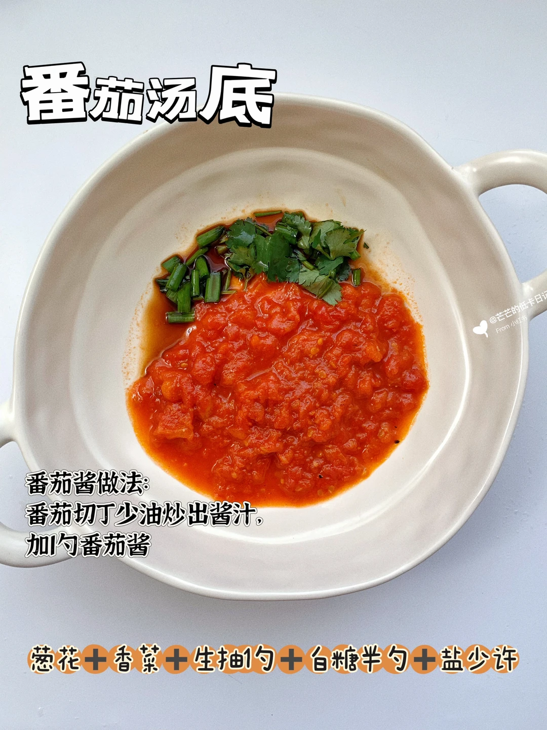 配料:番茄,番茄酱,生抽,葱花,香菜