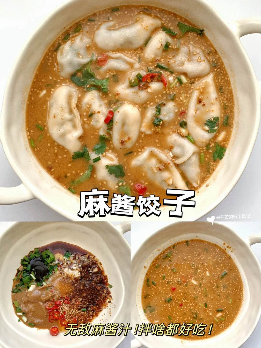 配料:葱花,蒜末,白芝麻,小米辣,辣椒面,芝麻酱,生抽,蚝油,白糖,盐🧂