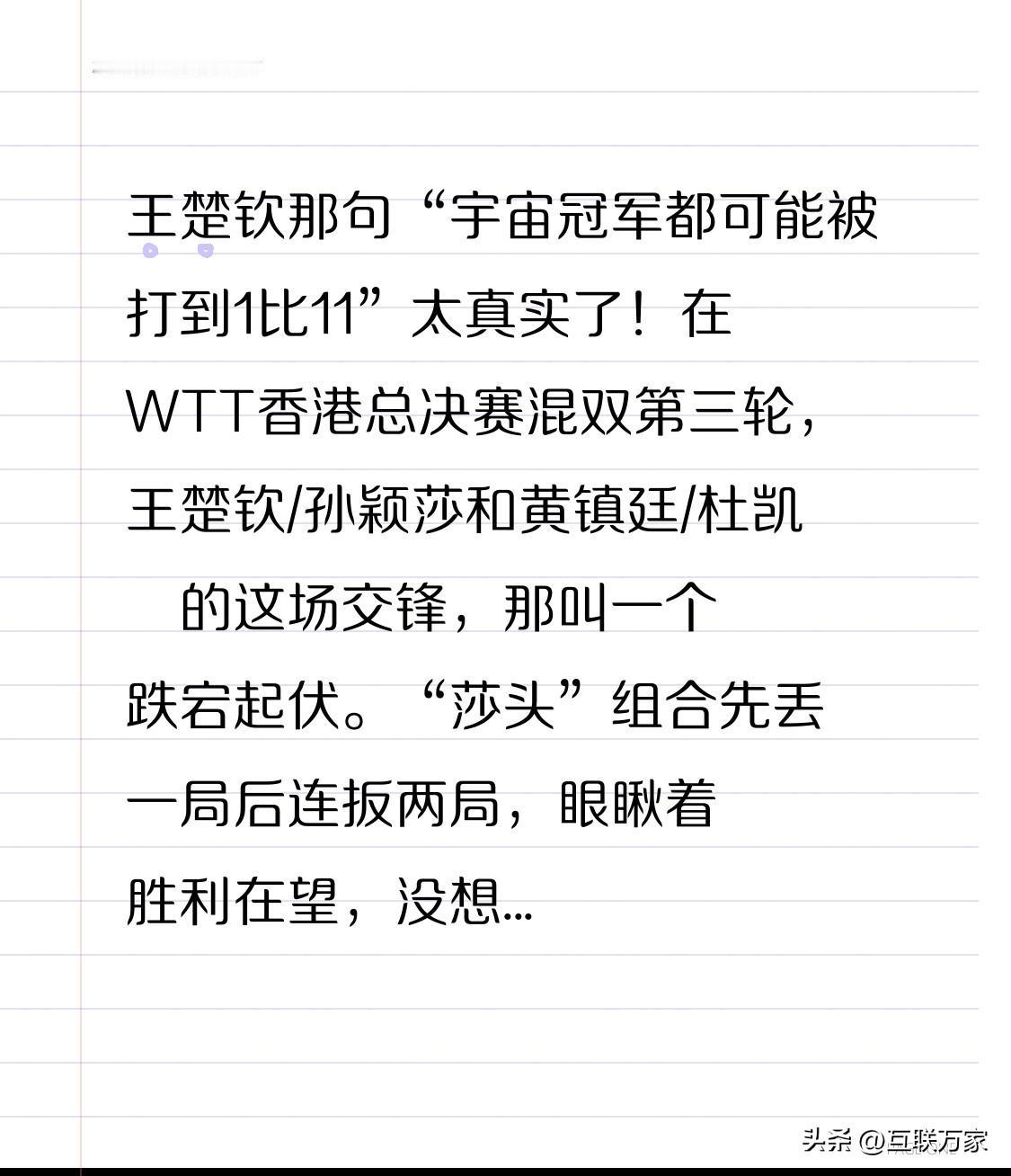 王楚钦那句“宇宙冠军都可能被打到1比11”太真实了!在WTT香港总决赛混双第三轮