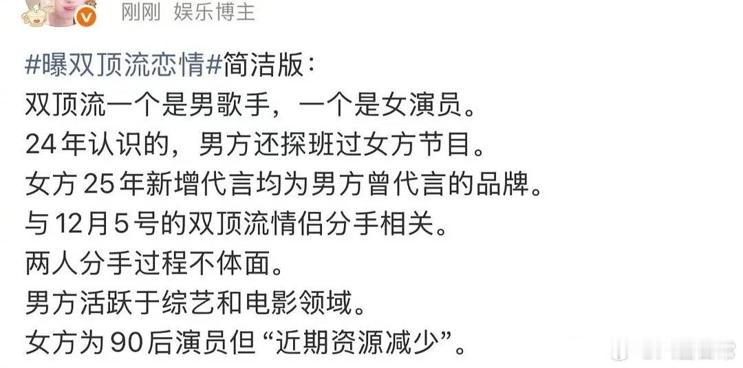 双顶流,一个男歌手,一个90后女演员,谁啊?曝双顶流一演员一歌手曝双顶流恋情