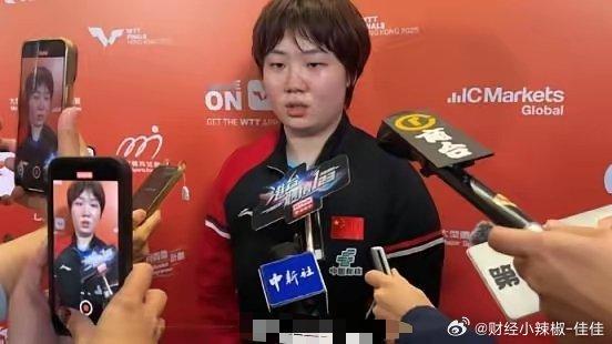 蒯曼回应孙颖莎伤势12月13日,在世界乒乓球职业大联盟(WTT)香港总决赛女单半决赛中,孙颖莎因伤退赛,蒯曼晋级决赛。在赛后接受采访时,蒯曼向记者描述了她在赛场上看到的事发经过。据了解,孙颖莎脚部出现不适,在经过医疗暂停后,孙颖莎还是没能恢复,最后决定退赛,目前尚不清楚孙颖莎是否还将出战混双决赛。