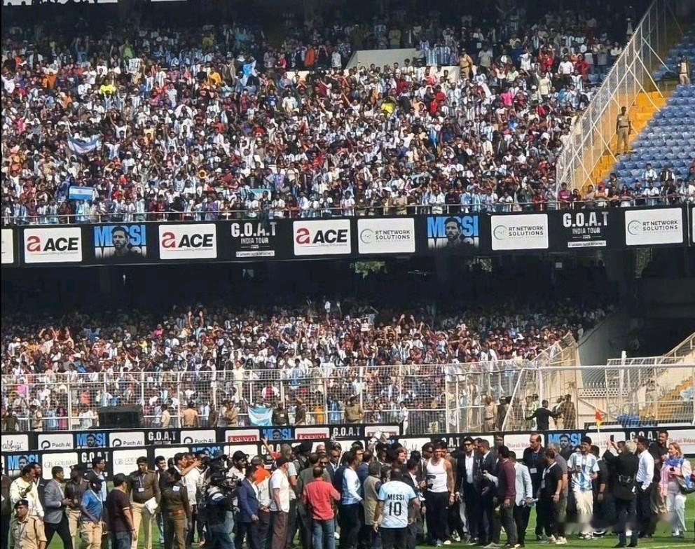 梅西印度活动爆发骚乱 据印媒报道称,梅西在加尔各答盐湖体育场提前离场后,失望的球迷出现暴力行为:撕毁座椅、投掷物品、冲入球场。 一位梅西的球迷说:“简直太糟糕了。他只来了10分钟。所有领导和部长都围着他。我们什么都看不到。他一次射门都没踢,一次点球也没罚。他来了10分钟就走了。浪费了那么多钱、那么多精力和那么多时间。我们什么都没看到……” 梅西和队友被安保护送离场时,球迷耐心耗尽。看台有人向官员投掷瓶子,横幅被撕毁。警察在部分区域使用警棍驱散人群。尽管梅西已离开,看台球迷仍高呼“梅西——梅西”和“我们要见梅西”。 西孟加拉邦首席部长玛玛塔·班纳吉就主办方在加尔各答未能妥善举办梅西赛事一事公开向梅西道歉。