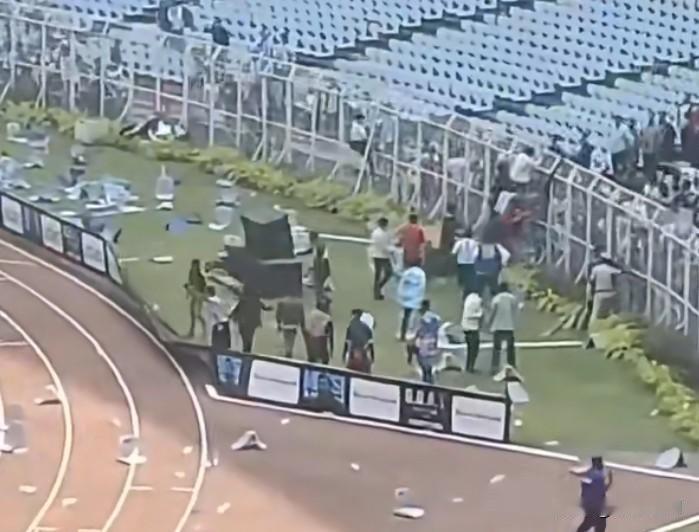 梅西印度行闹剧收场 眼看着门票钱打了水漂,印度球迷决定把地毯带回家弥补损失。 据外媒报道,梅西抵达印度加尔各答,参加在盐湖体育场举行的球迷互动活动。尽管现场有数万名球迷到场,且部分门票售价高达5000卢比(约人民币400元),但梅西仅在现场停留约10分钟,被工作人员簇拥离场,未进行近距离互动或表演。 活动现场安保混乱,梅西被层层包围,球迷难以看清其身影,导致情绪失控,出现投掷水瓶、掀翻设施、拆毁广告牌等抗议行为。主办方被指过度商业化,甚至推出7.8万元人民币的“合影套餐”,进一步激化矛盾。 印度足协事后发布声明:梅西印度行是公关公司组织活动,未曾申请任何审批许可。 印度警方也发布通报,梅西印度行在加尔各答球场发生混乱后,活动组织者已被警方拘留,并要求主办方退还门票费用。 由于赛事组织方的管理混乱和安全漏洞问题,大批官员及其随行人员围着梅西要求合影,导致看台球迷无法看到梅西的身影从而引发抗议,梅西不得不提前结束活动。 球迷对当地官员发出嘘声、丢水瓶,最终大批球迷冲进场内对体育场进行破坏。