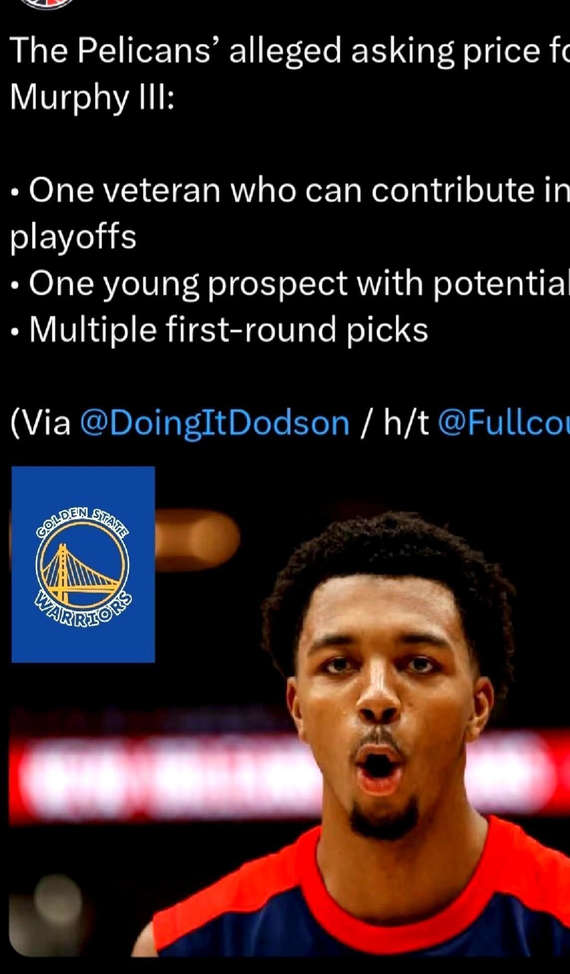 他们不是在补强,是在梭哈。 勇士把报价加到库明加+两个首轮签。 目标很明确:用最后一个首轮,为库里烧掉最后一块未来燃料,换鹈鹕的Trey Murphy III。 你看到的是38.5%的三分命中率。 科尔看到的是库里身边多了一个能拉开整个半场的空间点。 你看到场均14.3分,勇士管理层看到的是一个能换防三个位置的锋线答案。 墨菲每一个数据,都咬死在勇士当下最痛的齿痕上。 送走库明加,等于亲手关闭那扇“后库里时代”的门。 搭上两个首轮,是把重建火种扔进现在的炉膛。 这笔交易没有中间选项,它只服务于一个目标:2025年6月,再升起一面旗帜。 鹈鹕队开始评估薪资空间。 他们接住的不是库明加,是一张三年后的彩票和两份未来的选择权。 勇士递出筹码的手很稳,因为他们清楚,橱窗里陈列的奖杯,比账本上记载的潜力更灼热。 于是你看到,一个时代在为自己的终章准备最昂贵的注脚。 年轻的血肉和未来的签位,被锻造成投进火焰里的最后几捆柴薪。 这不是一次普通的补强,这是一场用明天兑换今天的豪赌。