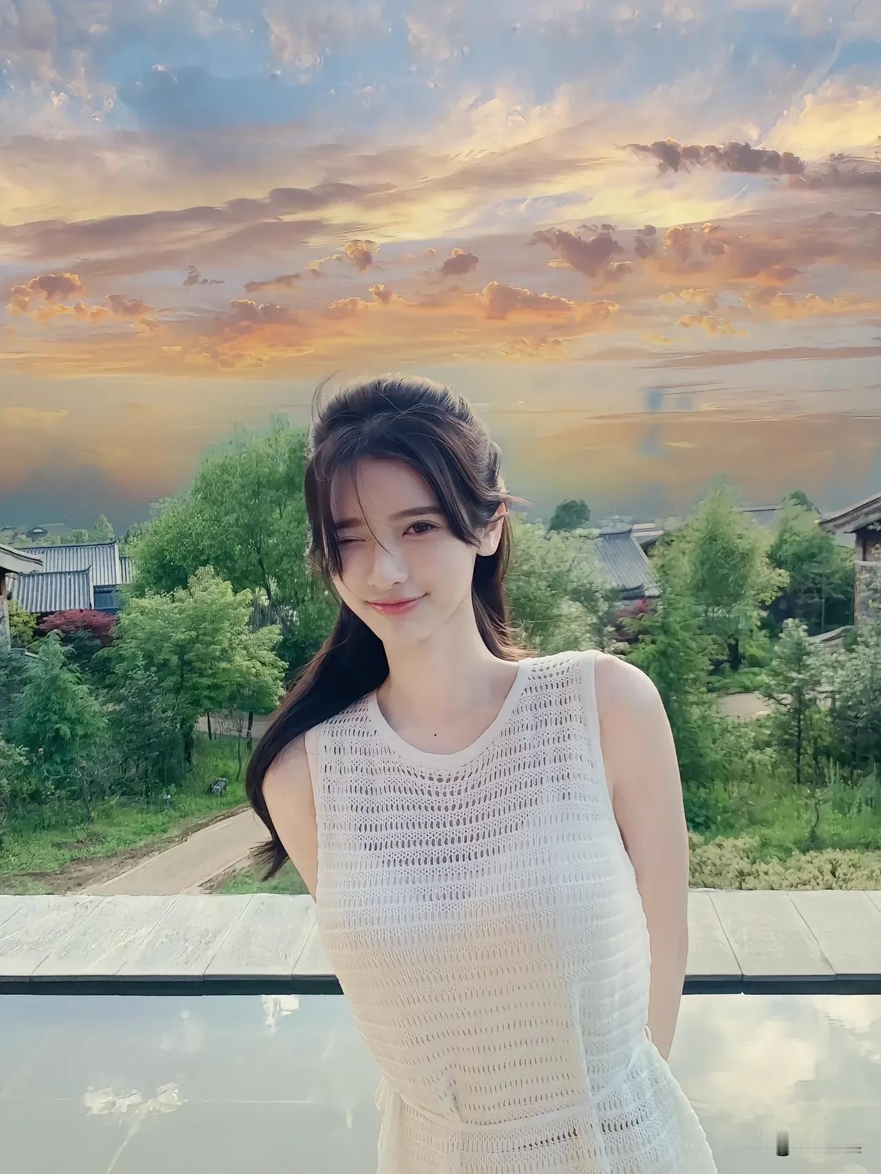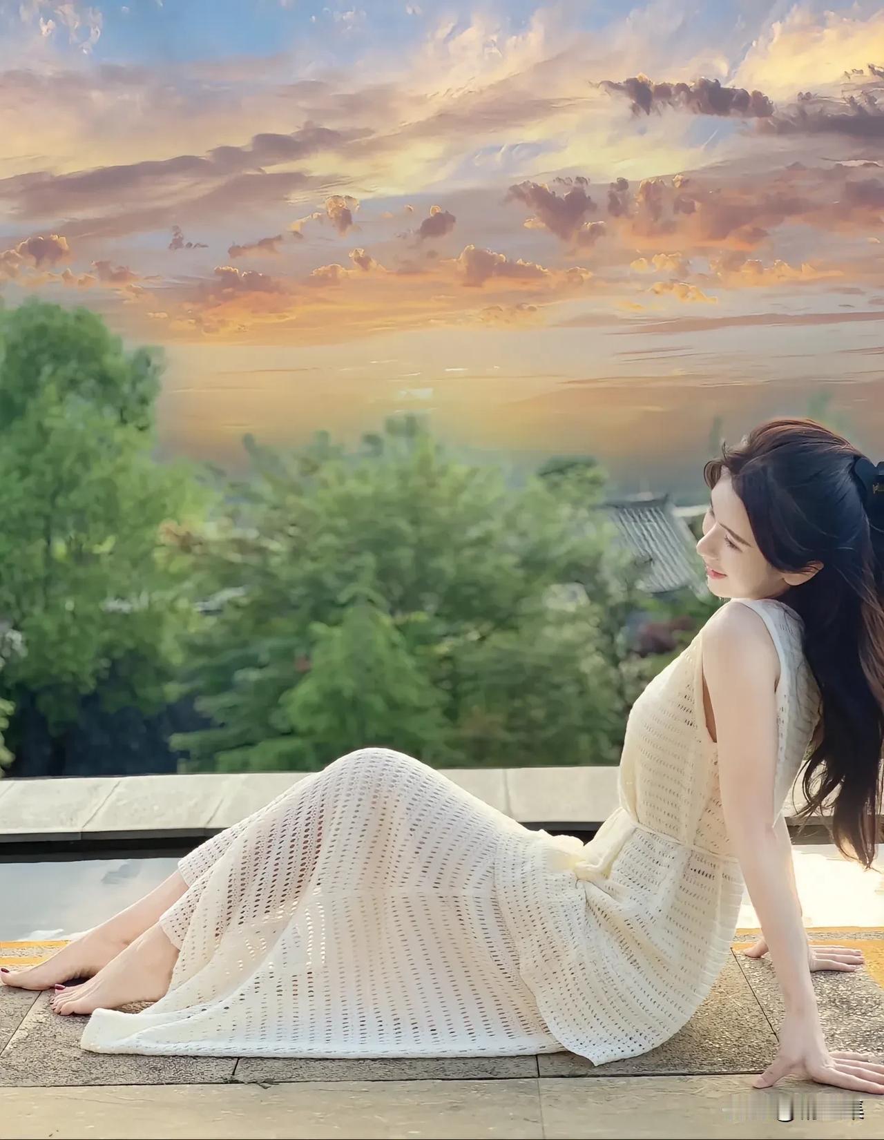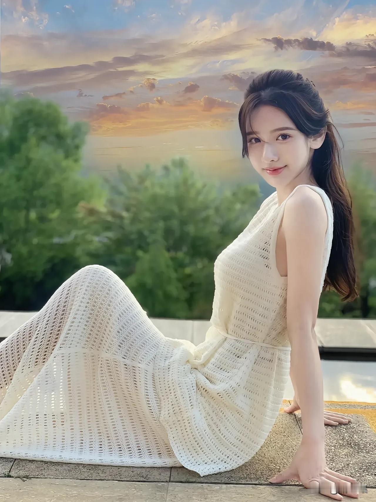 夏日黄昏,轻盈纱裙,温柔微笑,静享美好时光。
