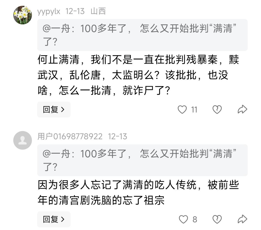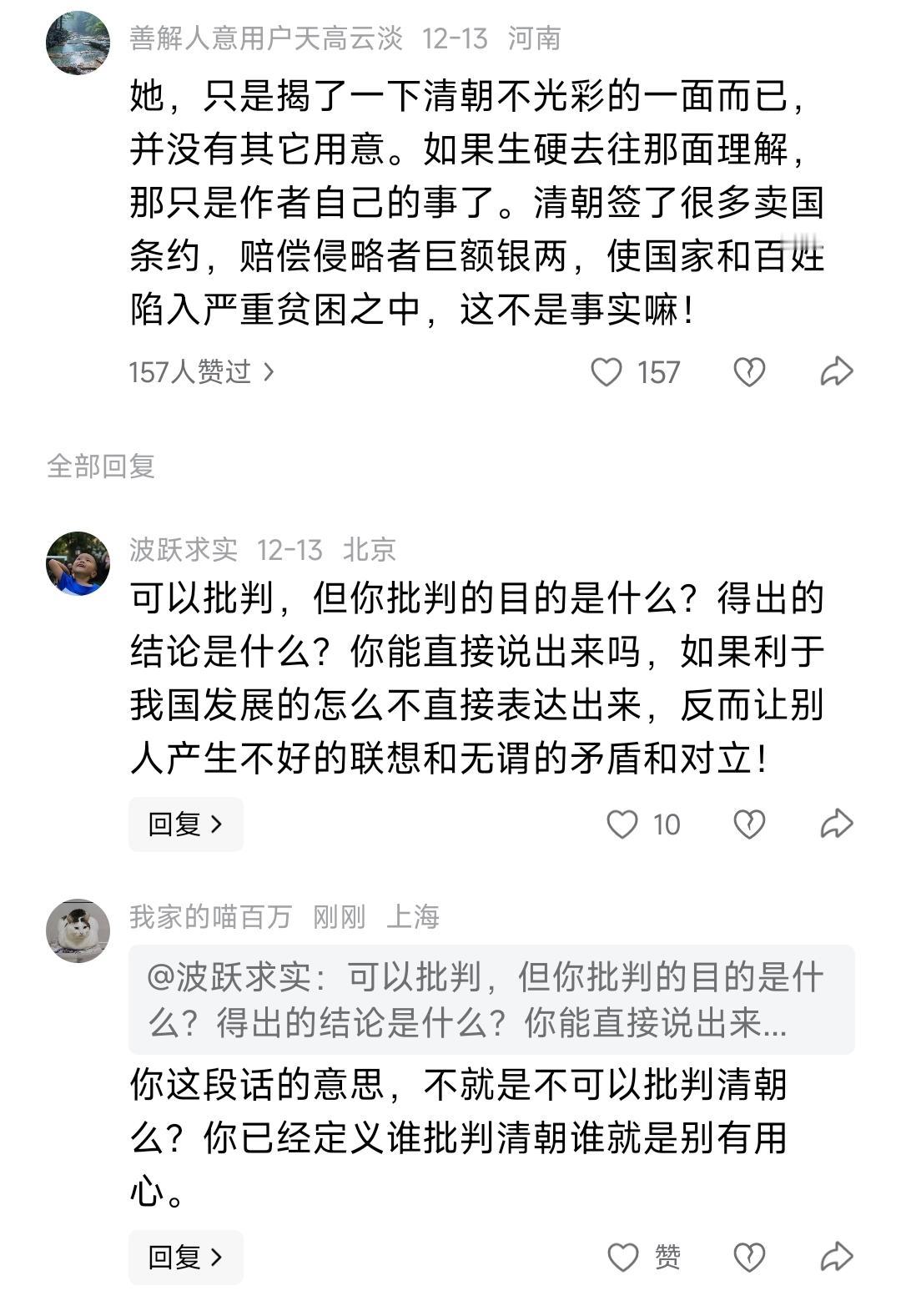 清朝开始有点向鱿鱼了。开始变得不可说,谁说清朝不好,说就会被扣上别有用心,分裂国家的帽子。还有一大批攻击批判明朝的,理由是明朝是封建统治。但神奇的是,这部分人反封建只反对明不反对清。