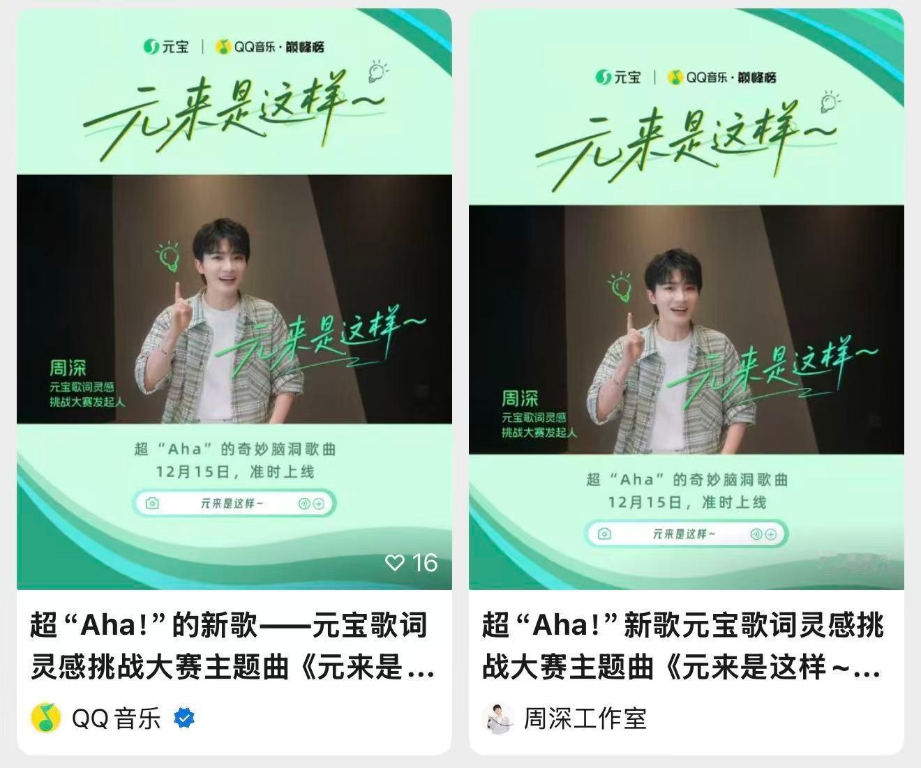 周深📣 12.14 新歌预告vx视频更新 📣元宝歌词灵感挑战大赛主题曲《元来是这样~》新歌预告👉🏻【柿子】和【扣音】VX更新新歌预告口播多多四连【⭐🍎🧱】