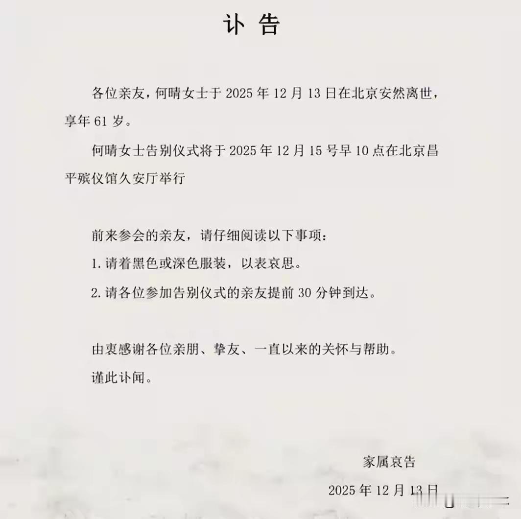 何晴离世年仅61岁!生前因脑瘤淡出娱乐圈,后患癌恶化无法手术 何晴,一个曾经在荧屏上留下无数经典瞬间的名字,竟然在短短几天内成为无数人心头的痛。61岁的她,本应享受人生的黄金岁月,却因脑瘤的阴影逐渐淡出了公众视野。曾几何时,她的笑容曾温暖无数粉丝的心,那份纯粹的美丽与坚韧,令人难以忘怀。 然而,命运似乎总喜欢在最美好的时刻开一个残酷的玩笑。何晴的病情逐渐恶化,从最初的头疼、乏力,到后来确诊为脑瘤,仿佛一场无声的灾难逐步逼近。为了抗争,她选择了低调、隐忍,甚至拒绝了太多的曝光,只为多陪伴家人,少一些公众的关注。可惜,病魔的步伐似乎比任何人都要快。 更令人心碎的是,医生曾告诉她,癌症已扩散,手术的可能性几乎为零。她的生命像一只脆弱的蜡烛,摇摇欲坠,却依然坚持着那份对生命的热爱。她用自己的方式,诠释了什么是真正的坚强:即使在绝望中,也不放弃希望;即使面对死亡,也要用微笑迎接每一天。 这场离别,令人扼腕叹息,也让我们不禁反思:在这个快节奏、充满压力的社会中,我们是否也在无形中忽略了身边的健康与幸福?或许,我们都像何晴一样,曾经为了梦想拼搏,却在不经意间忽略了最珍贵的东西——生命的本身。 何晴的离去,不仅仅是娱乐圈的损失,更是一个关于生命、关于坚韧的深刻启示。她用短暂而璀璨的一生告诉我们:无论遭遇多大的苦难,都要坚持走下去,因为生命的意义,或许就在于那份不屈不挠的勇气。她的微笑,或许会成为我们面对困难时最温暖的力量。 在这个纷繁复杂的世界里,让我们记住何晴的故事,不仅仅是缅怀,更是对生命的珍视。愿她在天堂安息,也希望我们每个人都能在有限的时间里,活得更有意义,更有温度。何晴照片