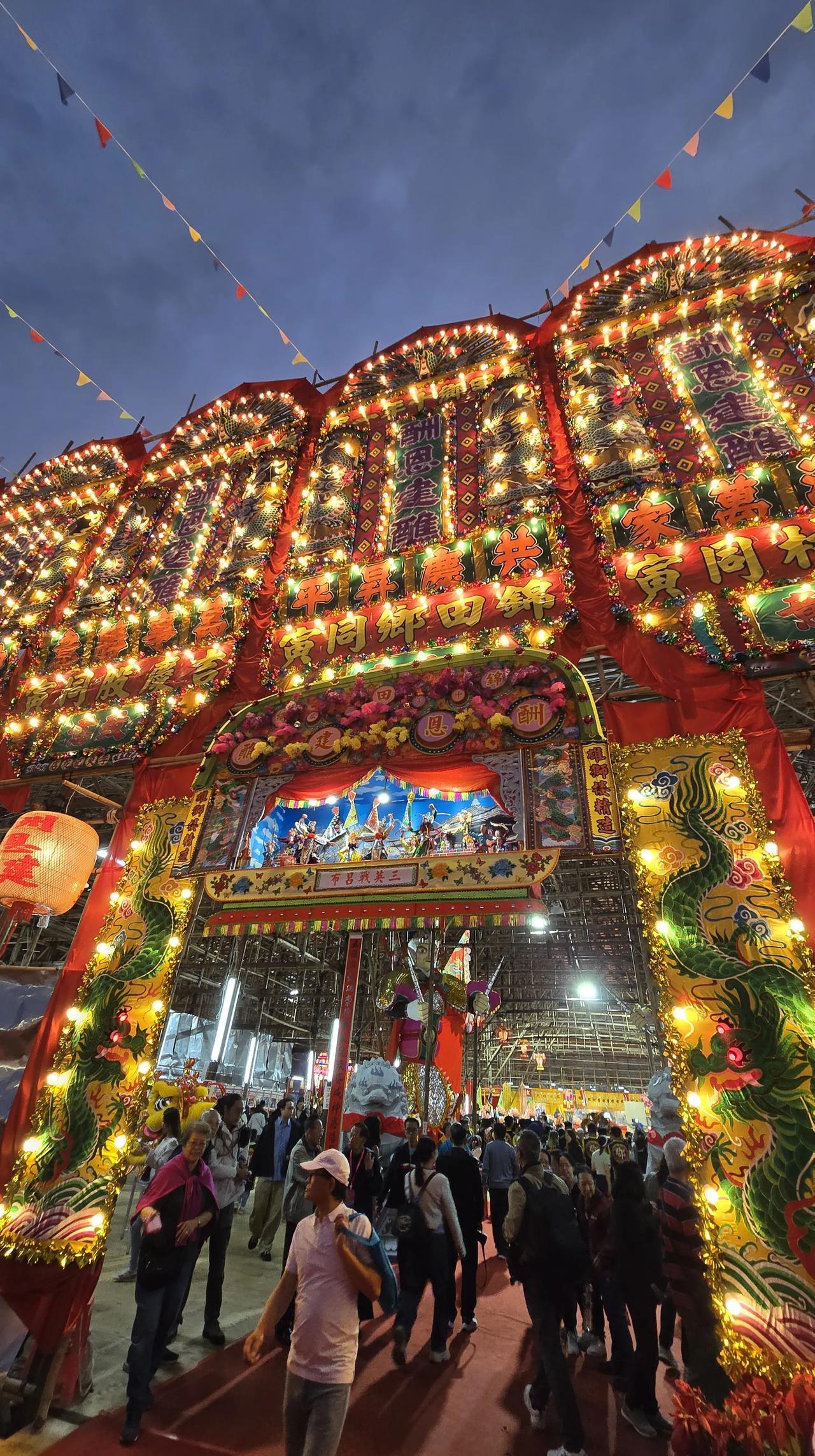 十年一度的「锦田乡酬恩建醮」逼爆! 昨天落错车,误打误撞,到了十年一度的「锦田乡酬恩建醮」,场内人山人海,多人得很,网络有时会大挤塞,好不容易才能走出来。据主办单位锦田乡事委员会资料,「锦田乡酬恩建醮」始于1685年,为香港历史最悠久的太平清醮之一。即是它足足拥有340年历史,每十年一度的盛会今届将于12月13日至19日举行,超过3万枝竹搭起4.2万呎「大金钟醮棚」,巨型又壮观,行入去即刻感受到传统竹棚工艺嘅独特美学,绝对係打卡必去! 设于水头村周王二公书院前地的锦田醮场,由大型竹棚搭建。锦田醮场内展出多件具历史意义的文物,例如1925年的打醮合约,见证当年社区参与的重要时刻。醮场亦会介绍酬恩建醮醮务和非物质文化遗产项目,包括戏棚搭建技艺、扎作技艺、花牌扎作技艺、道教科仪音乐、香港中式长衫製作技艺、舞狮、盆菜、手托木偶粤剧和粤剧神功戏;又会展示大型插画及借出长衫围裙,让公众在醮场内打卡留念。 高Sir也向大家推荐值得一去,在锦上路港铁站,搭小巴很快就到达,展期由12月13日至19日,上午11时至晚上7时开放,免费即场参加。今年的「锦田乡酬恩建醮」为第34届举行,是非物质文化遗产资助计划的贊助活动。 元朗锦田乡举办十年一度酬恩建醮 锦田乡酬恩建醮