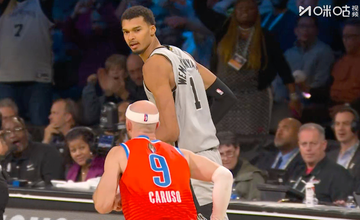 文班进球后指着卡皇文班好夸张的赛场影响力马刺vs雷霆