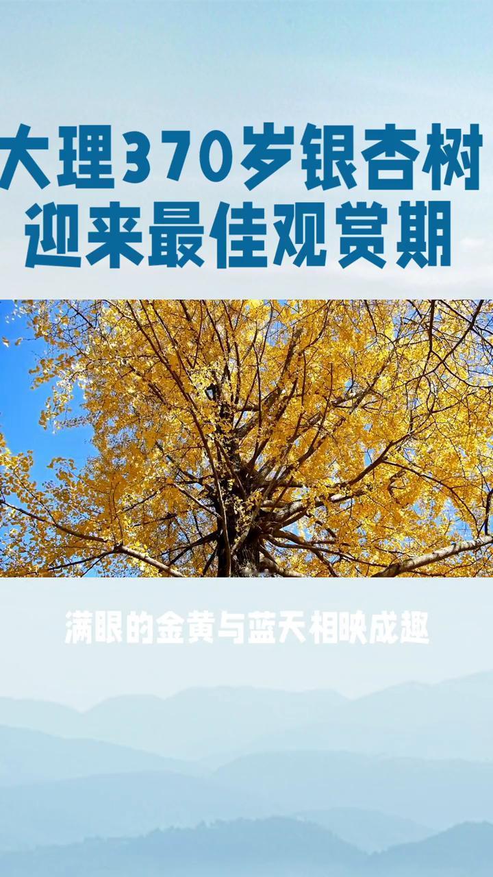 大理370岁银杏树迎来最佳观赏期。 你见过370岁的银杏树吗?在云南大理有这样一棵银杏树,它不仅见证了历史的变迁,如今更是迎来了最佳观赏期,美得让人窒息。 这棵银杏树位于大理的某个古老村落,树龄高达370岁,堪称"活化石"。每到深秋,它的叶片就会变得金黄灿烂,仿佛整个树冠都被阳光镀上了一层金色。站在树下抬头仰望,满眼的金黄与蓝天相映成趣,构成了一幅绝美的画卷。 这棵银杏树不仅是大自然的杰作,更是当地村民心中的守护神。据说,它曾多次在风雨中屹立不倒,为村民们遮风挡雨,守护着这片土地的安宁。如今,它更是成为了大理的一张旅游名片,吸引着无数游客前来打卡。在这里,你可以感受到岁月的沉淀与自然的神奇,仿佛穿越时空,与这棵百年银杏树共同见证历史的变迁。 370岁的银杏树不仅是大自然的馈赠,更是我们心灵的寄托。如果你也被这份美丽所打动,不妨来云南大理亲自感受这份百年的浪漫。 欢迎在评论区分享你的感受和想法。