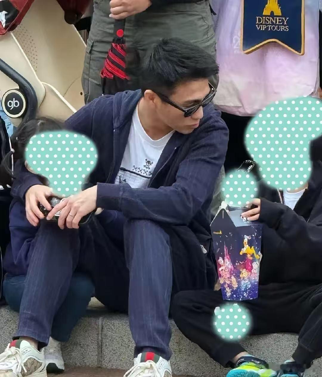 何猷君带儿女游玩香港迪士尼 香港迪士尼偶遇何猷君,父子三人坐在地上好接地气香港迪士尼偶遇何猷君