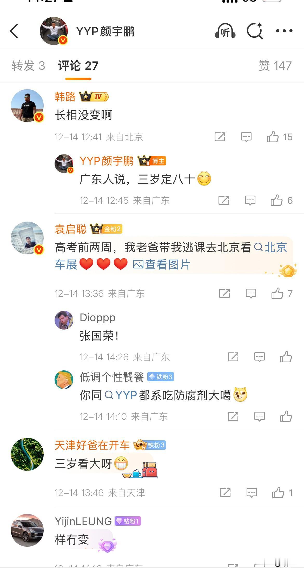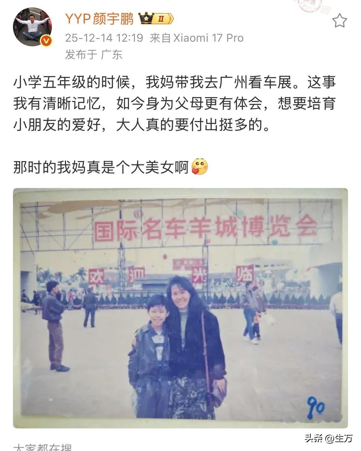 颜宇鹏: 小学五年级的时候,我妈带我去广州看车展[捂脸] 就在今天中午,颜宇鹏晒出了自己小时候去看汽车展览的照片,那个时候他才五年级,他的妈妈带着他,在这个博览会的正面来了一张合影! 我们可以清晰地看到,那个时候的汽车展览主题是:国际名车羊城博览会!所以早期的时候,许多进口的车都会在这个地方展示给老百姓。 没想到那个时候,颜宇鹏的妈妈就有这种意识,从小就要让孩子多去接触不一样的东西,不知道是不是这个原因,让当时小小的颜宇鹏心里面种下了喜欢汽车的种子。 从照片里面的笑容就能看得出来,这孩子打小就得开心,韩路也打趣道:从小到大好像长相就没有变过[捂脸] 他把这张照片晒出来的时候,许多同行都说自己有类似的经历,包括袁启聪的爸爸也是这样,就要高考了,都带着自己的儿子专门跑去看车展。 所以自己的父母从小到大知道自己的孩子喜欢什么的,尽自己所能,给他创造一个比较好的环境,说不定就会影响这个孩子的一生。