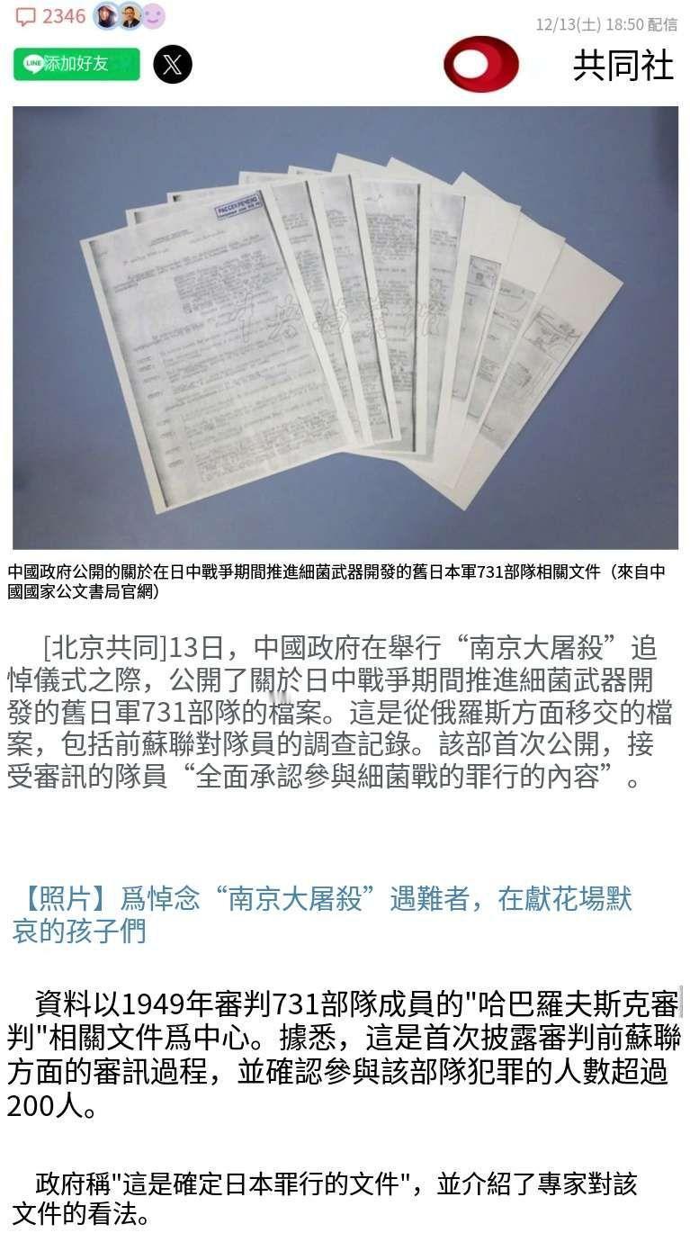 铁证如山,休想抵赖! 国家公文书局官网首度公开俄罗斯移交的731部队档案——这份来自“哈巴罗夫斯克审判”的原始记录里,接受审讯的731队员“全面承认参与细菌战罪行”:活人实验的残酷细节、细菌武器的研发流程、超过200名罪犯的名单……每一页都是第三方证据的“铁板钉钉”! 日本右翼越想捂住这段血腥历史,我们越要把档案“摊”在阳光下:那些被731部队用活人做实验的同胞,那些被细菌战摧毁的家庭,他们的冤魂还在等着“申诉”,他们的痛苦不该被抹去! 历史从不是任人篡改的剧本,铁证面前,任何“否认”“模糊”都是自欺欺人!公开档案不是为了延续仇恨,而是要让所有罪孽“无所遁形”——铭记,是对受害者最好的告慰,更是对历史真相最坚定的守护! Source: 共同社