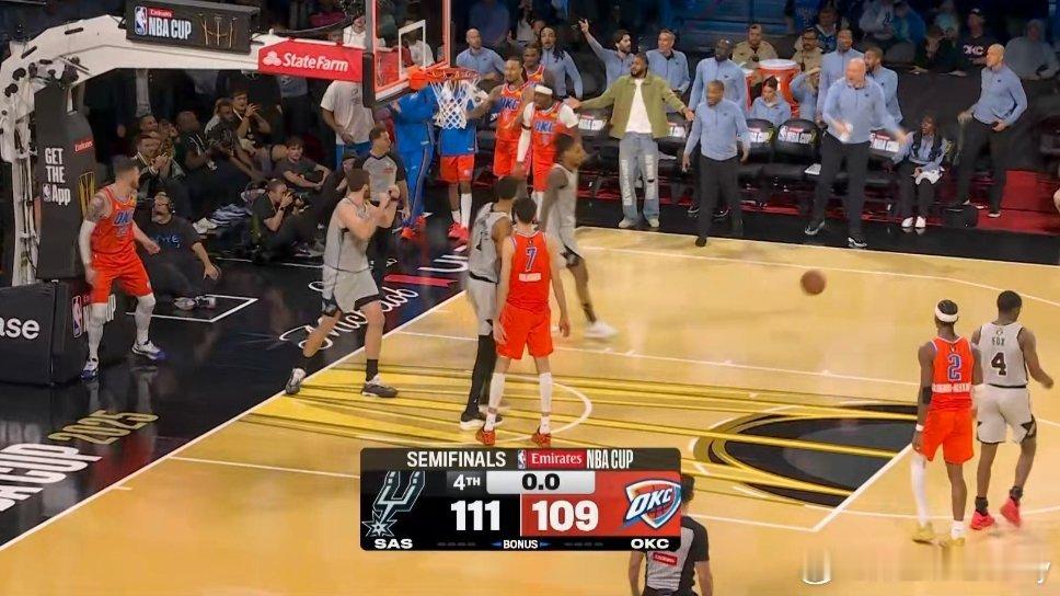 雷霆赛季第二败!马刺终结雷霆16连胜!挺进NBA杯决赛!!🐮