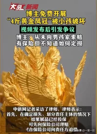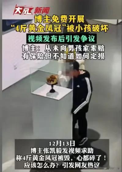 北京,女子深得丈夫喜爱,丈夫亲手给她设计了一个4斤重的黄金凤冠,女子手中还有不少稀奇珍贵的东西,都是与爱有关的,她免费办了一个展,让大家见证她的爱情,其中,黄金凤冠就在展厅中间,上面有一个玻璃罩,一个男孩过来看展,却一个不小心,推倒了玻璃罩和黄金凤冠,女子和丈夫感到非常的糟心和晦气,她征求大家的建议,想要给这黄金凤冠定损。 发生这样的事情,女子第一时间就和丈夫发出视频,征求大家的意见,他们想问大家,发生这样的事,如何给这个黄金凤冠定损? 毕竟这是独一无二的,是她丈夫亲自打造的,没有一个定价,但对于他们夫妻俩来说,这更有着重大的意义。 只见视频里,他们所开的展厅非常的漂亮,里面有不少展示爱的作品,这是女子和丈夫特地举办的展厅,是免费的。他们就是想通过展示这些爱的作品,让更多的人感受爱情的力量。 这个展厅果然吸引了不少人进来观赏,女子的丈夫毕竟是搞艺术的,所以他们的展品都非常有特色。 大家进到餐厅,都沉浸在艺术的世界里,其中一个女子带着一个男孩,也在餐厅里观看。 最吸引他们的就是展厅中间的黄金凤冠。 那精美绝伦的造型,那黄灿灿的光泽,深深地吸引了他们。 女子想留住这美丽作品的画面,她不由自主地拿起手机在拍摄,她就想着将这美丽的黄金凤冠拍下来。 4斤重的黄金凤冠,每一个细节都是女子的丈夫勾勒出来的,他亲自设计的,如此独一无二的作品,实在值得人细细观赏。 其中,男孩对这美丽的黄金凤冠也充满了好奇,他靠得近近的,就想睁大眼睛,好好看清楚,这黄金凤冠的每一个细节之美。 也许是靠得太近的缘故,他哈出的气让玻璃有些模糊了,他伸手去触碰玻璃罩子,可能是想擦掉那雾气。 结果就是那一瞬间,玻璃罩子居然掉落,连同黄金凤冠摔在地上,支离破碎。 黄金凤冠摔落在地上的那一刻,女子和男孩都吓坏了,他们深知,这样的作品价值不菲,如今摔坏了,损失肯定很大。 如果要他们赔,那真是赔不起啊,发生这样的事,他们内心忐忑不安。 不过女子和丈夫发视频,称他们不会向男孩追究责任,但是他们的黄金凤冠确实坏了,即使有保险,也不知道如何去定损。 但女子也确实为了这件事,整个人心情烦躁,她怀孕了,因为这件事,时常感到肚子发紧,这件事是真的气到她了。 她气的不是要男孩赔偿,而是男孩不懂得珍惜展厅里的展品,在观赏展品的时候,没有保护好这些展品。 她之所以那么在乎这个黄金凤冠,是她觉得黄金凤冠,象征着她和丈夫的爱情,象征的他们的婚姻。 他们展出黄金凤冠,是为了得到众人的祝福的,但如今,黄金凤冠已毁,而且是人为破坏的,她真的难以承受。 似乎黄金凤冠已毁,真的会预示着他们的婚姻,将会遇到很大的劫。 他们更加愤怒的是,他们遇到的事情可不是第一次,很多展厅展出的作品,都是比较珍贵稀奇,但时常有人来观赏的同时,会破坏展厅里的东西。 他们同时呼吁大家去展厅观赏作品的同时,一定要懂得保护这些作品,毕竟这些都是艺术家们,呕心沥血做出来的作品,有一些更是不可复制的,是世界上独一无二的,一旦破坏,没有第二件。 那么发生这样的事情,男孩是否需要承担责任呢? 首先,这个黄金凤冠上面的玻璃罩子并没有做加固,并且没有提示,人不小心碰到,都容易掉落毁坏,在这件事中,男孩是无意碰坏黄金凤冠的,他并无过错。 《民法典》第1165条规定:行为人因过错侵害他人民事权益造成损害的,应当承担侵权责任。 一般情况下,如果男孩没有过错,那么男孩是不需要承担责任的。 但是如果男孩的行为,确实给女子造成侵权,他多少是需要承担一定的责任的。 《民法典》 第1166条规定:行为人造成他人民事权益损害,不论行为人有无过错,法律规定应当承担侵权责任的,依照其规定。 不过女子没有要求男孩进行赔偿,男孩就不需要赔偿。 那么你对这件事有何看法呢?