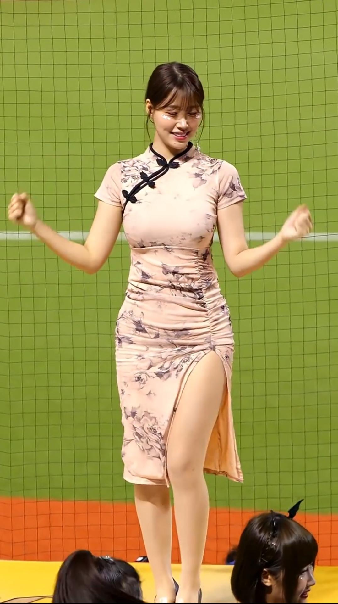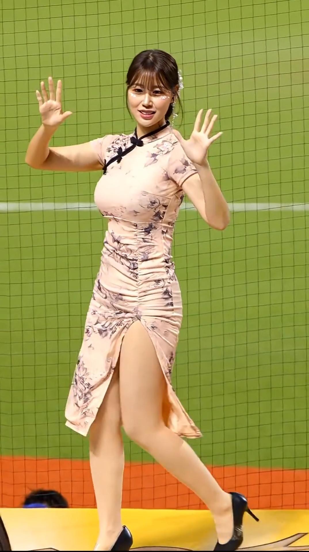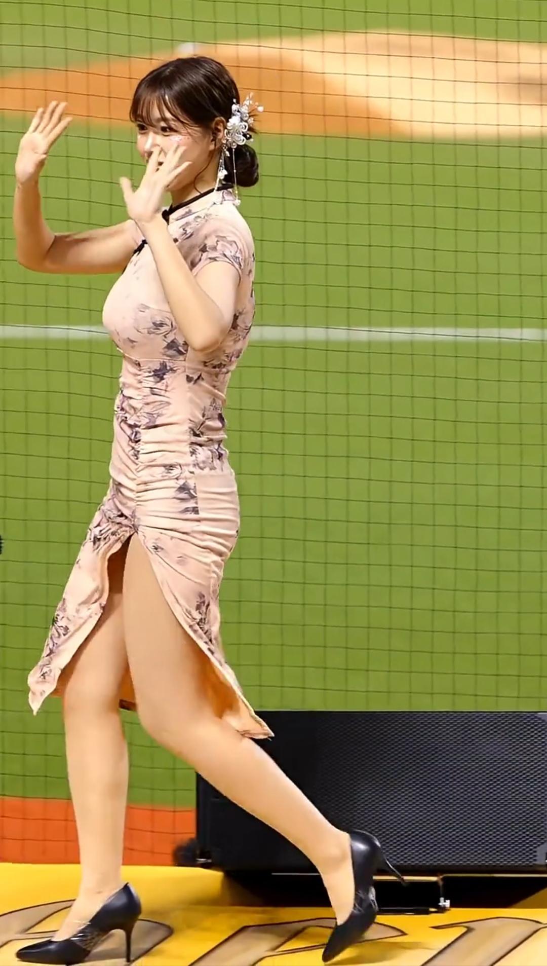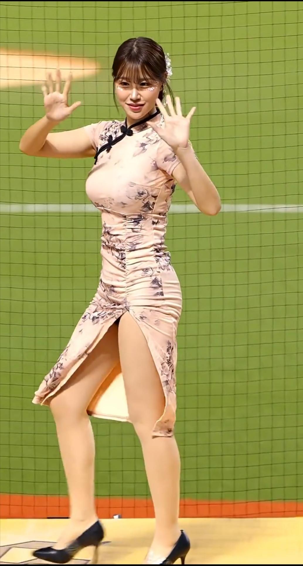 水墨旗袍衬身姿,赛场舞台展风情。 浅粉底色染着水墨花纹的旗袍,将东方古典的优雅与现代裁剪的利落揉合得恰到好处。高开衩设计勾勒出修长腿部线条,盘扣与立领守住中式韵味,搭配黑色细高跟鞋,让传统旗袍多了几分赛场舞台的灵活俏媚,柔媚又不失挺拔的身姿,把东方女性的曲线美展现得淋漓尽致。 赛场的活力与旗袍的雅致撞了个满怀,她踩着轻快的步调起舞,眉眼间的笑意鲜活又明媚。发丝间的发饰点缀出娇俏,每一个抬手移步的动作,都让古典的温婉与赛场的热烈相融,成了赛场里边最亮眼的一抹东方风情,将灵动与优雅的氛围感拉满。
