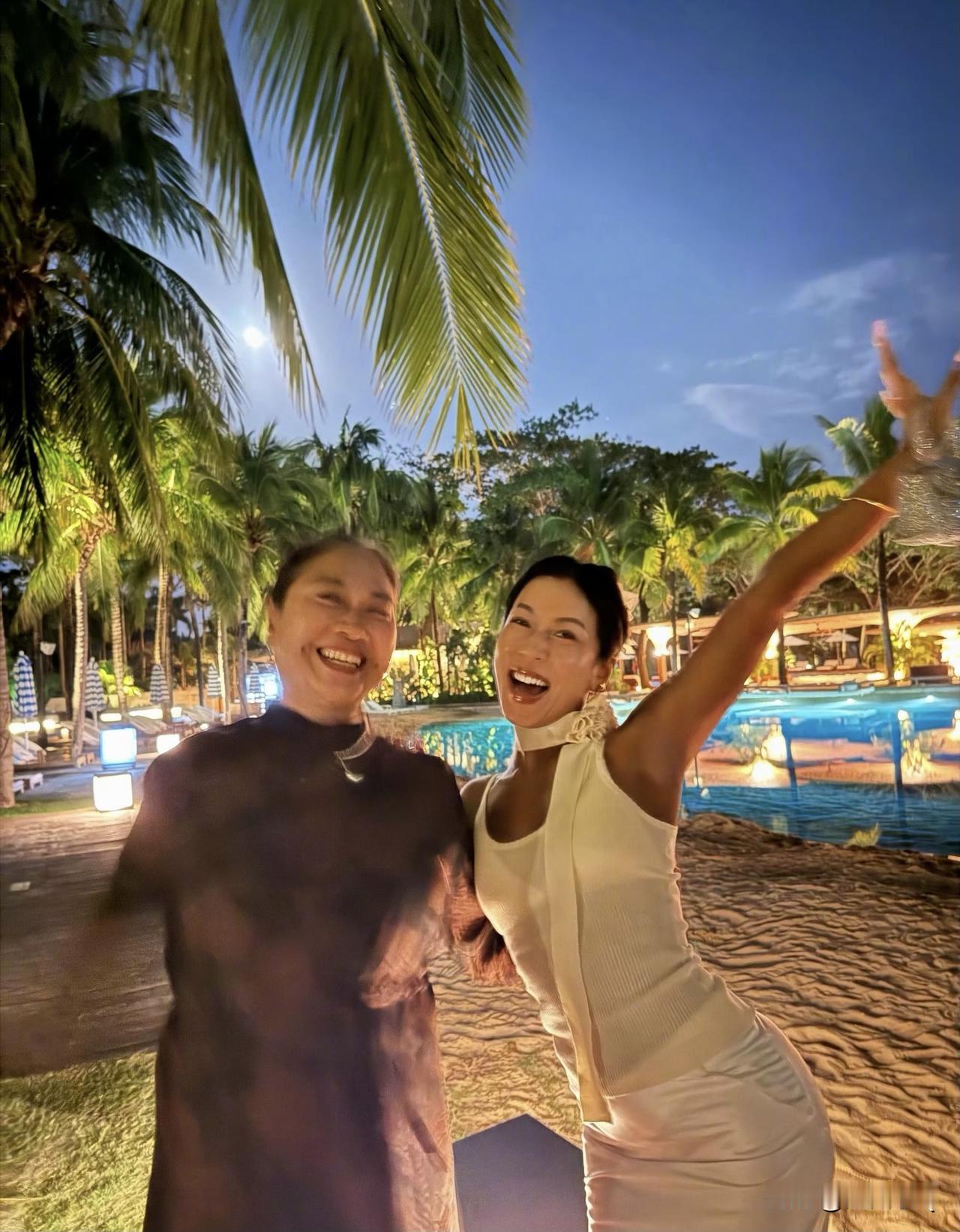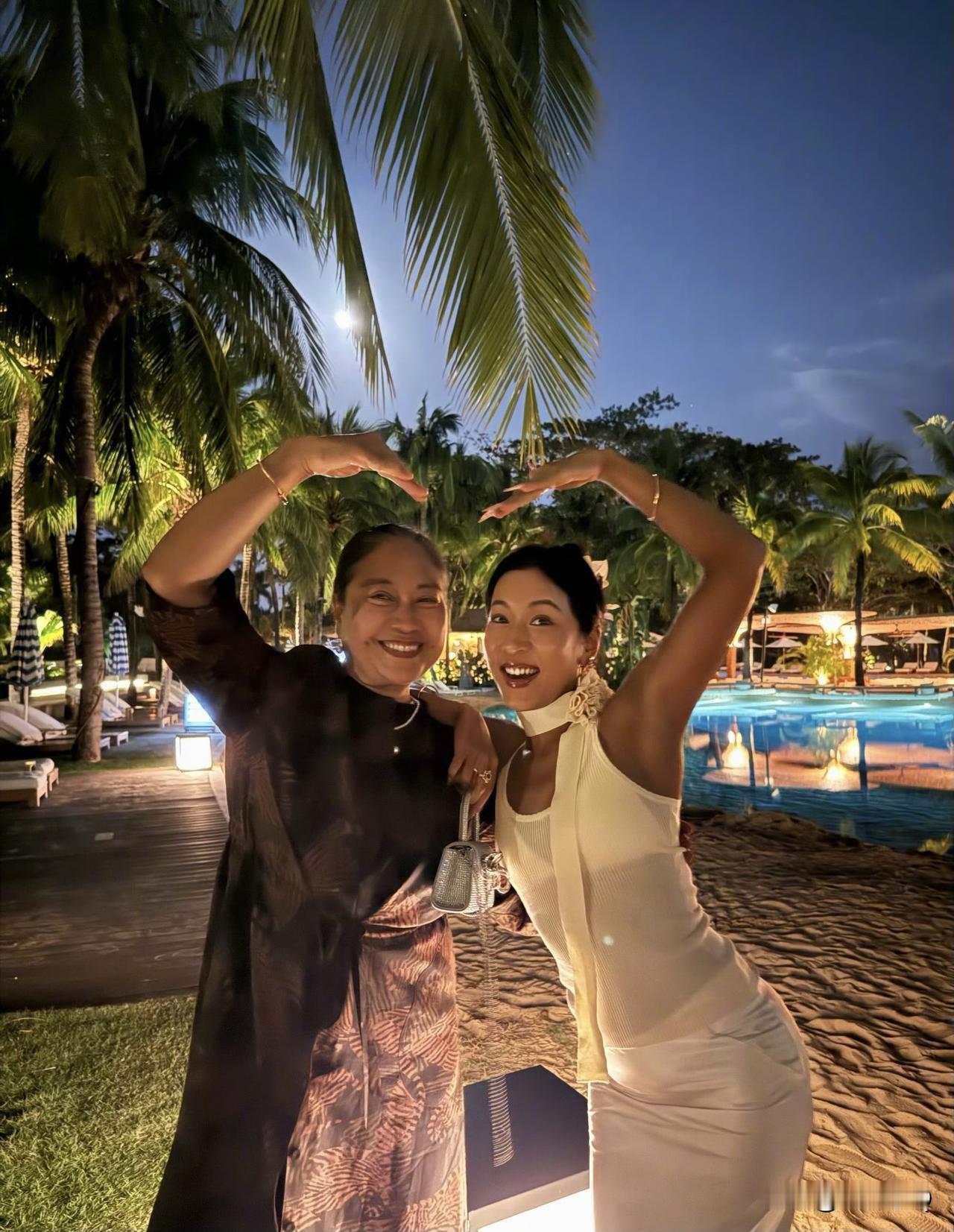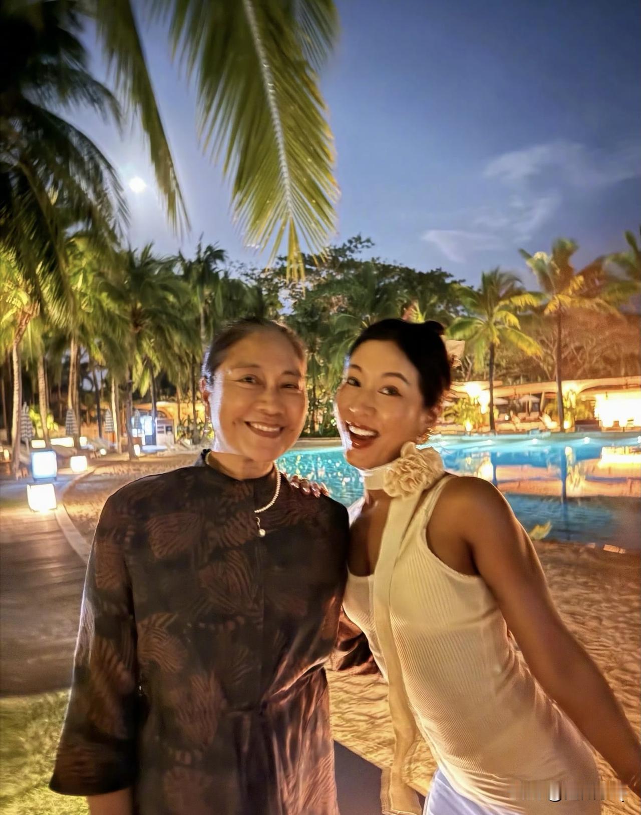吉克隽逸和妈妈游玩照,母女俩虽然都是大黑皮,但颜值是真的很高,五官长得挺好看。
