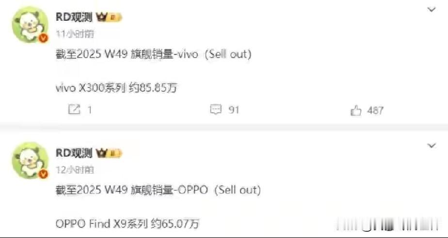 vivo、oppo、华为三家手机品牌各家高端旗舰销量目前如下:vivox300系列发售时间10月17号到目前为止总销量85.85万台、oppofindx9系列发售时间10月22号,到目前为止总销量65.07万台、华为mate80系列发售时间11月28号,到目前为止总销量75.49万台。总结如下: vivox300系列开售57天总销量85.85万台 oppofindx9系列开售52天总销量65.07万台 华为mate80系列开售16天总销量75.49万台