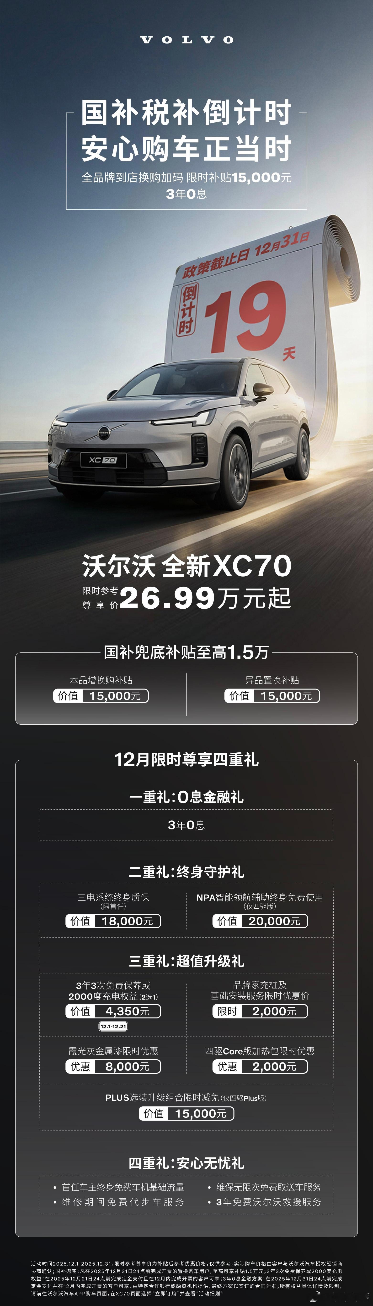 罗永浩说豪华新能源就看沃尔沃XC70 选车,终归要落到技术和安全上。沃尔沃XC70的技术底气,源于SMA超混架构与极致安全。罗永浩称沃尔沃工业设计依旧在线架构上,P1+P2+P4三电机与3DHT变速箱智能配合,实现全场景高效动力,亏电性能依然不拉跨。安全上,它通过了和自家XC90的64km/h严苛对撞测试,A柱无变形、不起火、能开门,沃尔沃传统艺能了。如果你在看车,那么这台有技术、很安全、还划算(全品牌置换补贴、3年0息以及包含终身质保)的豪华混动SUV,值得重点关注。