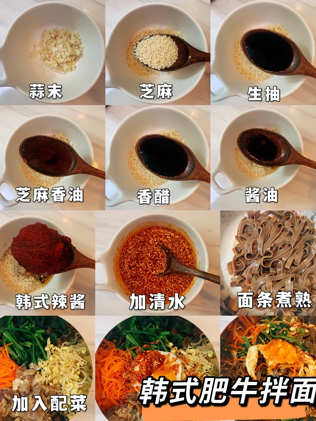 🅰️酱汁:一勺蒜泥,一勺芝麻,一勺生抽,半勺醋,一勺芝麻油,适量盐,一勺韩式辣酱,加水搅拌均匀