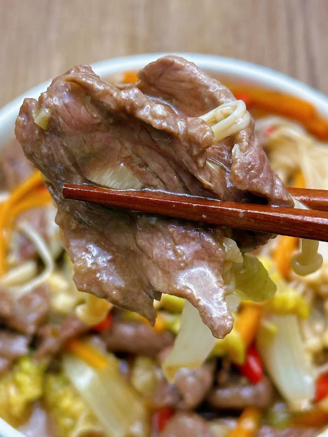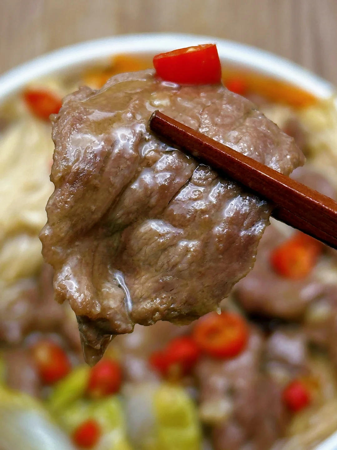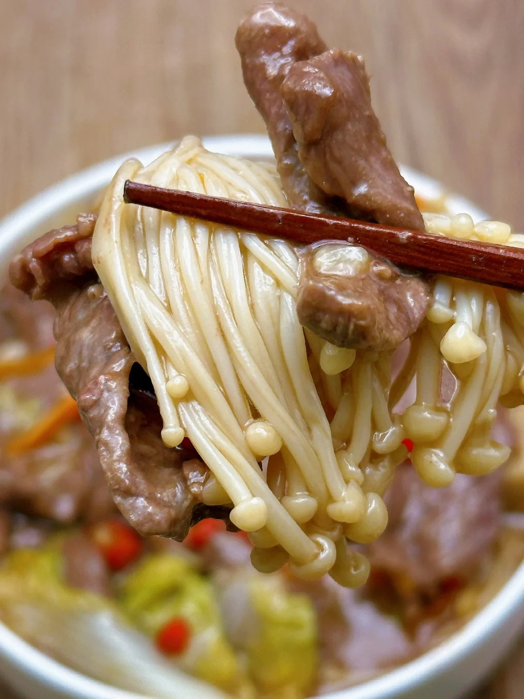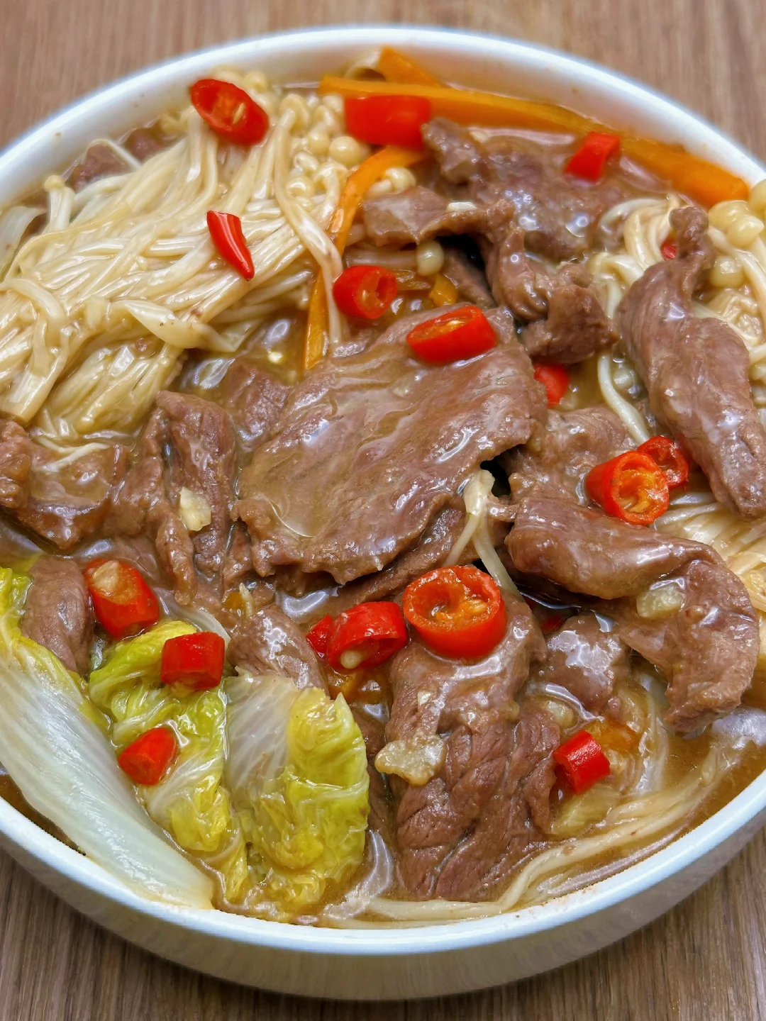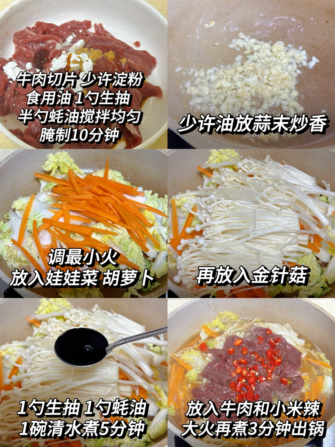 🥗食材:牛肉、金针菇,娃娃菜、胡萝卜、小米辣