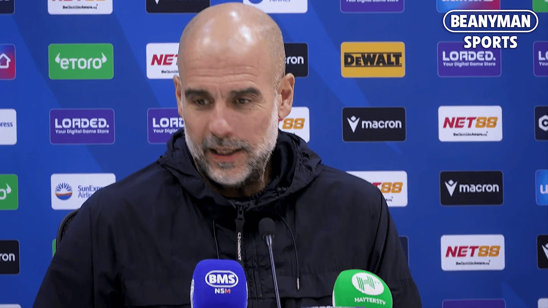 虎扑12月15日讯英超联赛,水晶宫0-3曼城。赛后,曼城主帅佩普-瓜迪奥拉出席新闻发布会。
