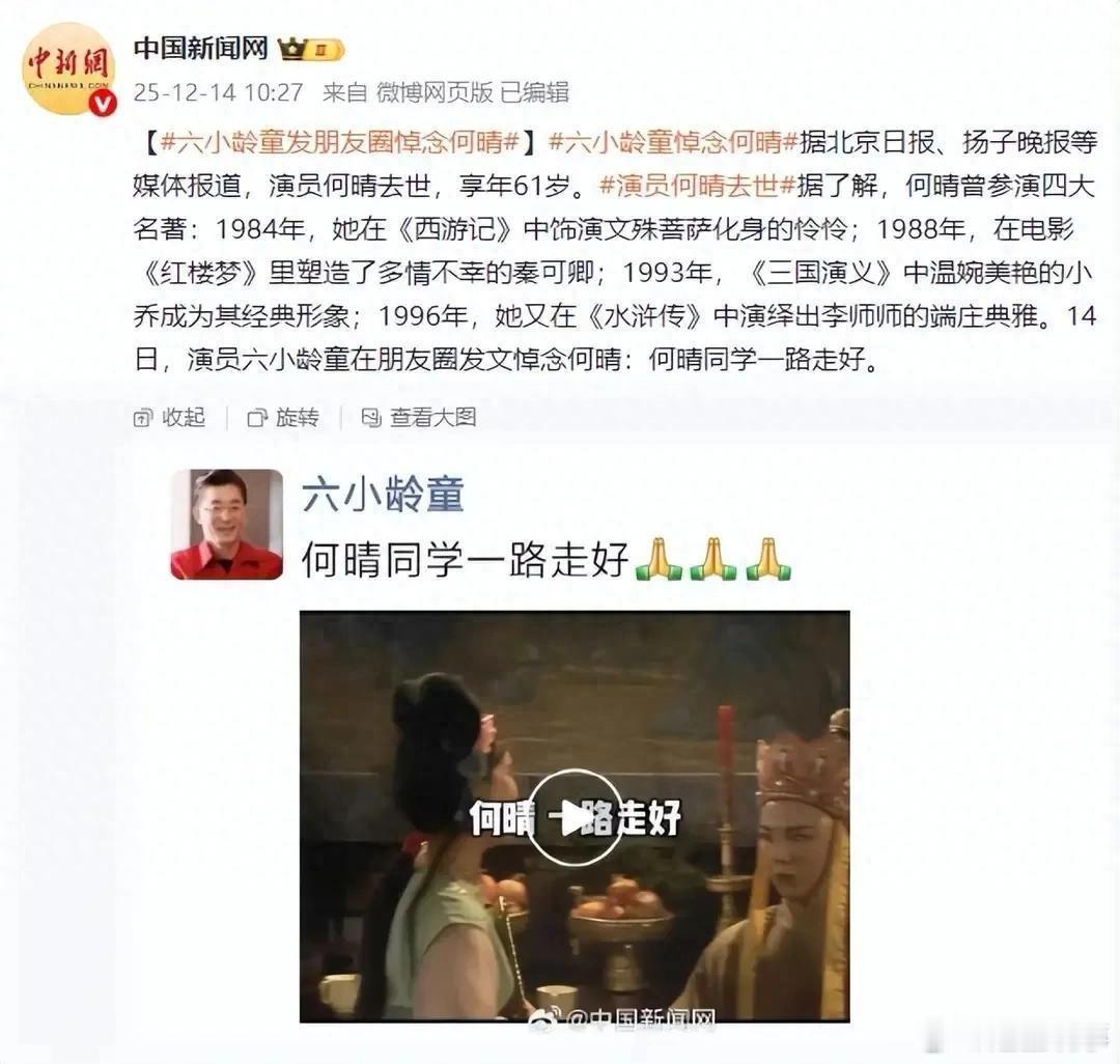 2025年12月14日,“古典第一美女”何晴离世的消息传遍全网,引发