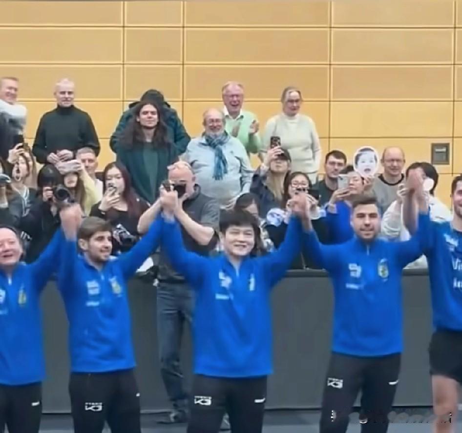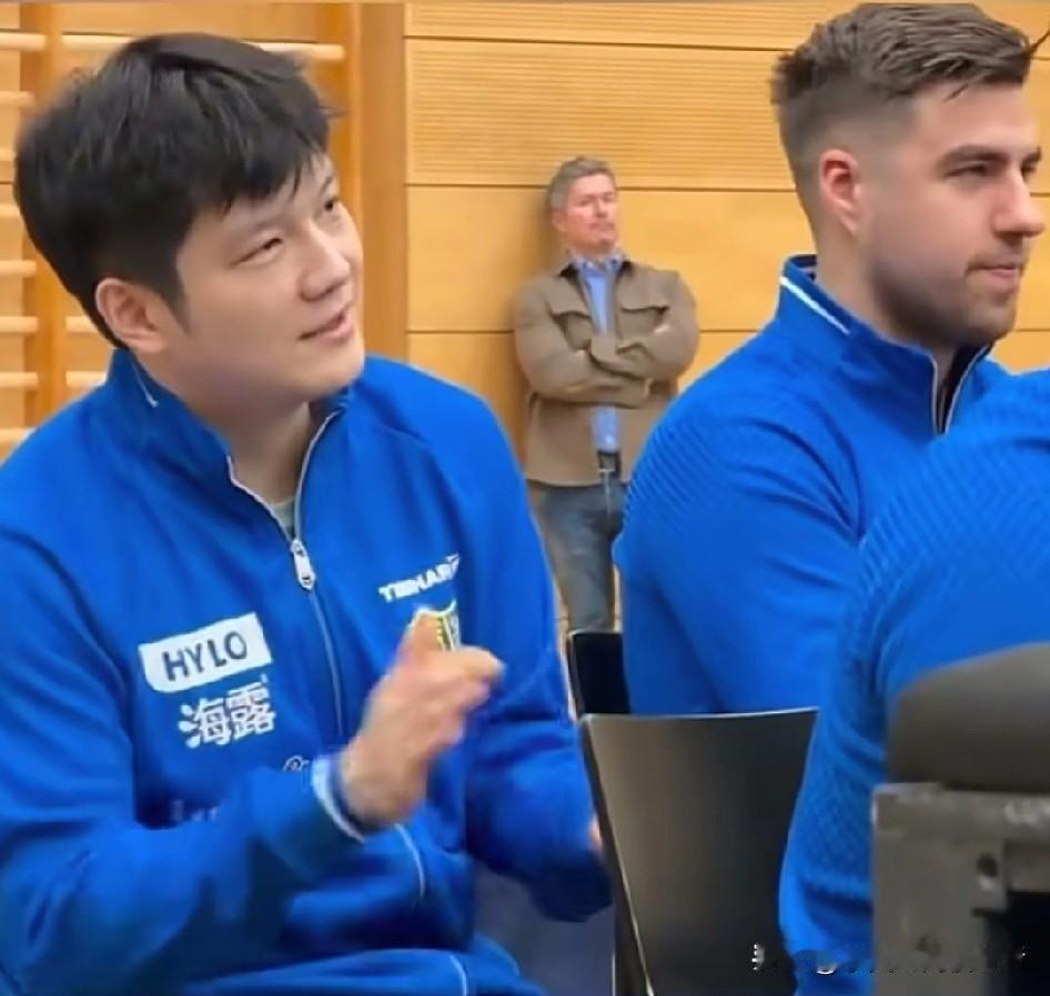 樊振东快乐回归德甲,跑着进入赛场头发都跟着快乐的飘了起来。 回归后的首秀就3:0完胜。全场吹吹打打,掌声阵阵氛围很温暖。 感觉德国这身蓝色球衣清清爽爽很配樊振东。 德甲联赛的轻松快乐和国内乒超的热闹相比之下,感觉还是德甲更适合樊振东。