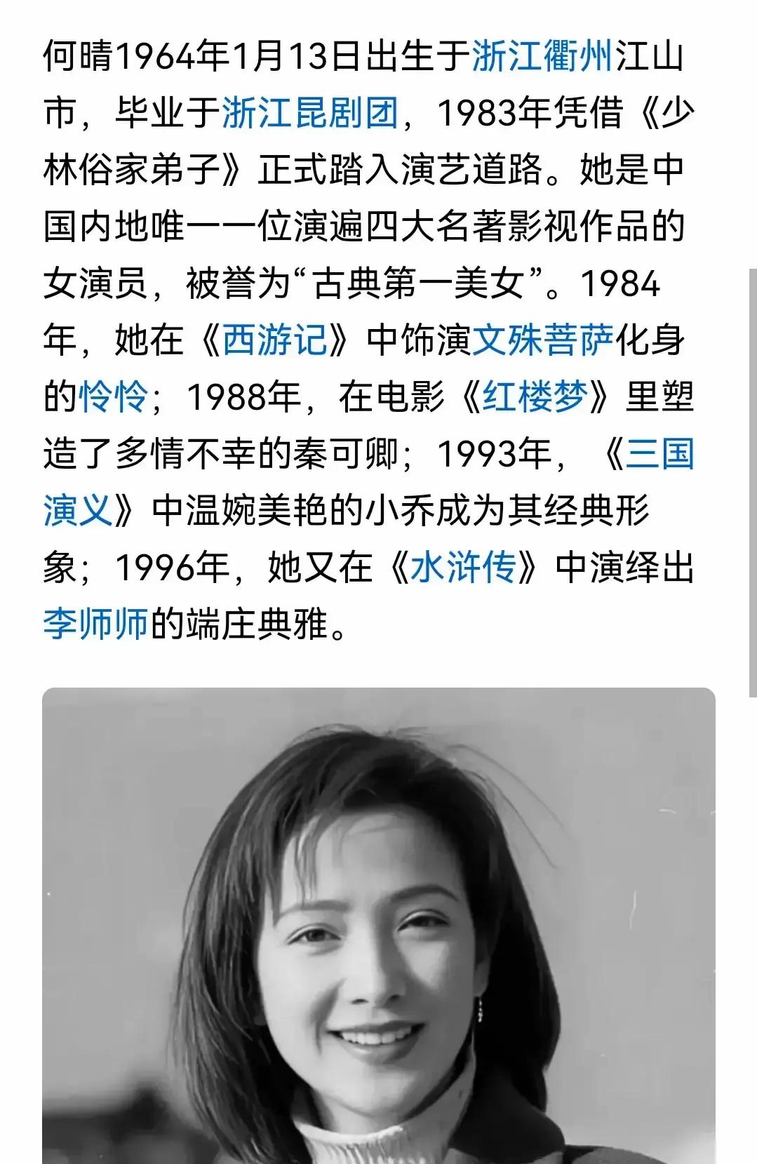 她演遍四大名著,却演不好一场婚姻。 许亚军递来离婚协议时,何晴刚卸完李师师的妆。当年他一句“别演了,回家”,她攥着剧组通告单的手没松开。 《西游记》里她是灵动的怜怜,《红楼梦》中她是哀婉的秦可卿。导演说她的脸能定住摄像机,但婚姻镜头里全是虚焦。2003年那个夏天,她抱着两岁的儿子站在摄影棚阴影处,听见自己说:“戏服不能脱。” 后来她演孝庄皇后时眼底有刀锋。去年冬天癌症带走了58岁的她,央视频道深夜重播《水浒传》,弹幕飘过“李师师在哭”——人们总记得她眼波流转,却忘了她从未在戏里流过泪。 美人的剧本总写妥协,她偏把最后一幕演成不退场。不是每段感情都有续集,但她的角色永远在重播。