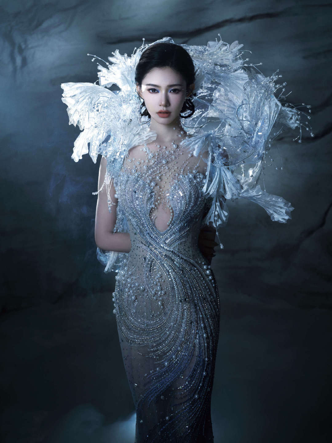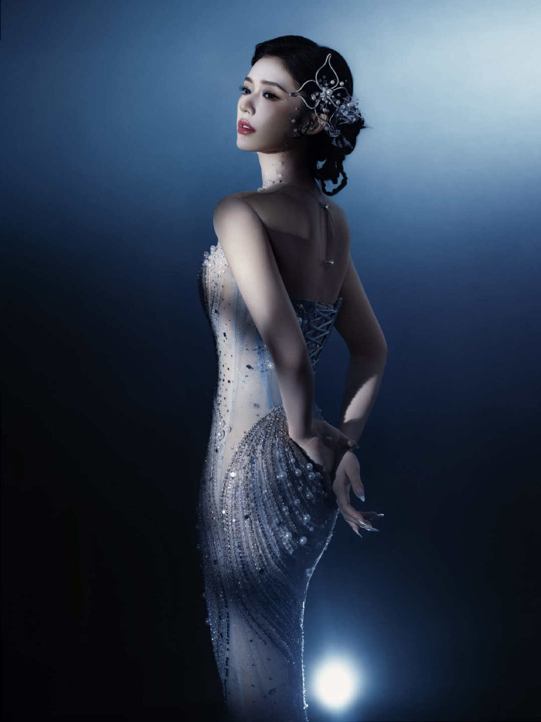 林允这是在cos甄姬吗 舞台上的林允如同出水芙蓉,水蓝色长裙缀满星光般的钻饰,羽翼轻展间仙气四溢,这身甄姬风造型美得不可方物!