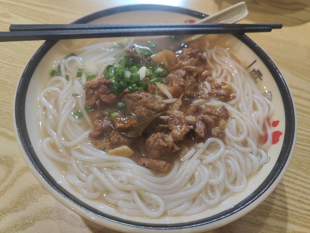 谁懂啊!这碗肉燥米粉也太香了吧! 滑溜溜的米粉浸在鲜美的汤头里,吸溜一口直接香到骨子里。上头的肉燥炖得软烂入味,每一丝肉糜都裹满了酱汁,混着葱花的清香,鲜味儿直接拉满。米粉的口感也超绝,软而不烂,嗦起来特别过瘾。 简简单单一碗,却吃得人胃里暖乎乎的,打工人的快乐瞬间被这碗米粉填满啦!