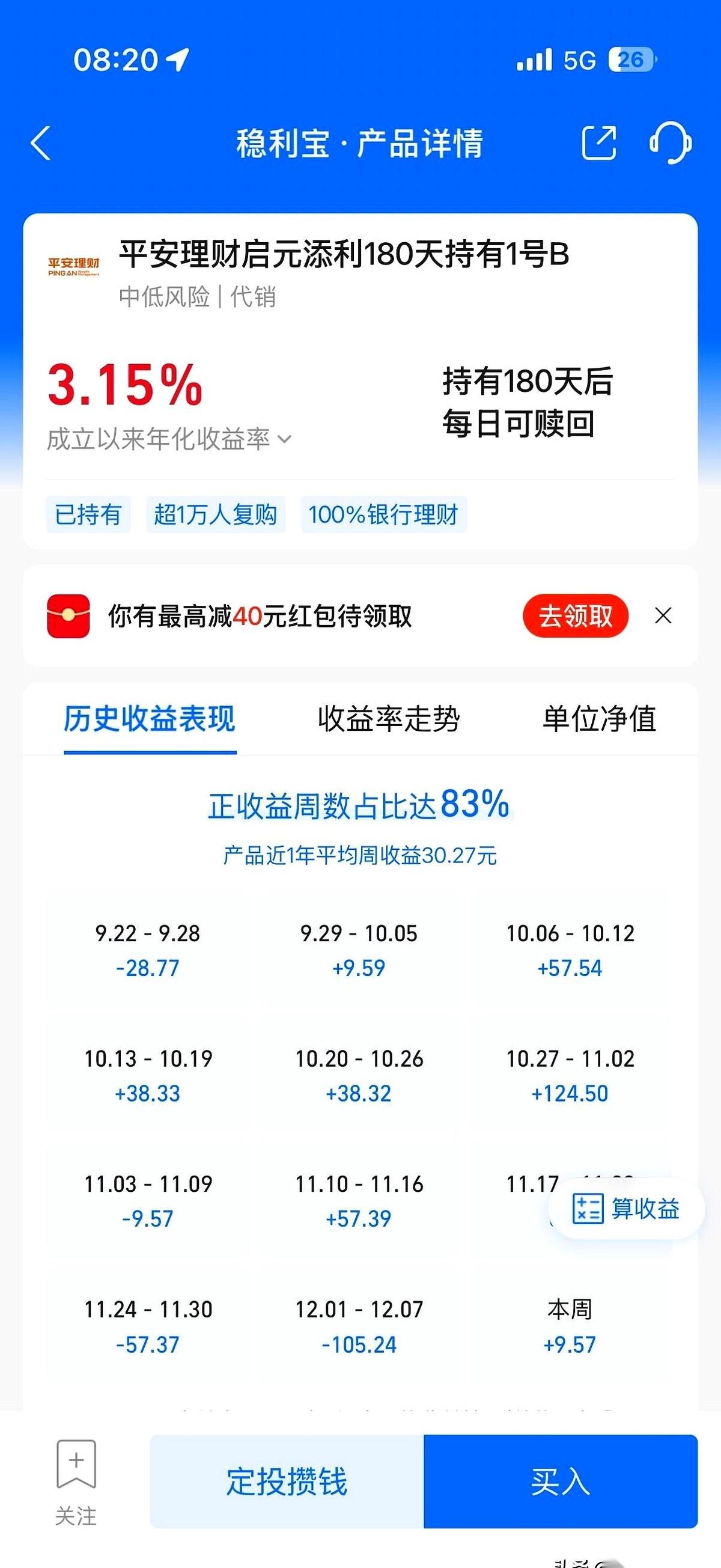我真的会被支付宝这个3.15%的“历史年化”笑死。 稳利宝是吧?我看应该叫“稳定