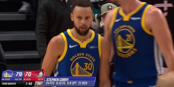 啦!!封到脸上了还能后仰投进!动图来了。 每次打开拓者库里都有出色发挥,今天又拿40分了,库日天扛着球队誓要赢开拓者一次。 就算不让杨翰森上,上了克林根和威廉姆森,也防不住库里呀。中锋防守到外线,面对出手速度快成闪电的库里,那防守都是形同虚设。 勇士打球就是漂亮,助攻非常多,库里命中率高,球队的助攻自然也多。