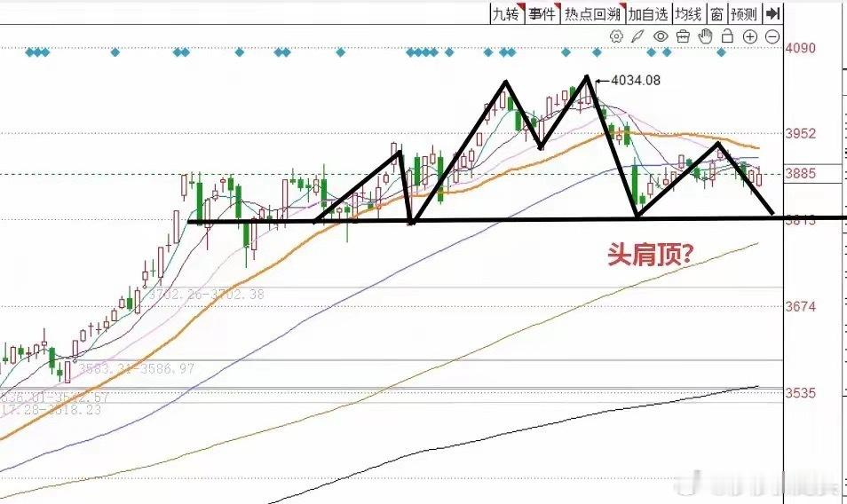 12月15号午评: A股早盘大幅低开,冲高之后又回落,接下来该怎么看?大家来听听莎莎怎么说!从今天上午市场的走势来,市场走出了非常纠结的行,受到隔夜外盘的影响,三大指数大幅度的低开,上证指数低开超0.6%,深圳成指、创业板指低开的幅度则更明显。但是低开之后,我们看到主力通过传统行业板块,保险、银行、证券,白酒,煤炭等权重板块的拉伸,迅速地组织了低开反弹的行情。而且我们也看到市场早盘一度出现了400多个亿的增量,也就是说早盘的反弹部分,是有一些资金参与了抢反弹的动作的。但是我们也能够发现,等这一部分资金被消耗完毕之后,就没有更多的资金加入到市场里面来。所以呢随后在重要的压力位又出现了冲高回落的走势。从今天上午的走势,我们可以得出三个结论:第一,今天早盘低开反弹是弱反弹 反弹,再次确认了短线市场面临上方5日、10日、20日30日多周期均线的压力。第二,接下来下午市场莎莎认为会走的相对偏弱一些,整体来看下午应该是一个震荡或者偏回落的走势。第三,今天虽然出现了低开反弹的情况,但是整体当前市场的节奏依然处于调整的过程当中。我们要做好市场指数回到日线级别前期头肩顶颈线位置的这种可能。什么是头肩顶?大家请看下图——上证指数日线图。所以接下来从应对层面来看,莎莎认为还是要小心谨慎一些,仓位上要控制一些。不过从今天早盘来看,我们也看到了一些相对积极的现象,比如说非常低位的白酒板块出现了比较明显的异动。零售,乳业,消费类板块,今天早盘表现相对较好。也许超短线这一些方向,或者会有一定的小幅度的表现。这是我们需要去注意的。而莎莎认为近期来看,最重要的就是防止科技方向出现短线的震荡回落。所以以人工智能以及半导体为首的硬科技方向,我们短线理论上来说,多看少动或者是比较合适。中午收盘点评和大家说到这里,兄弟朋友们点赞就是对莎莎这个纯技术派的最大支持!