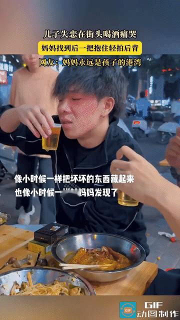 “世上只有妈妈好!”男生失恋了心里难受就约两个朋友在街边买醉,妈妈知道后担心儿子就出来找。看到儿子边喝酒边流泪的样子,妈妈心里也难受,她什么话也没说,悄悄走到儿子的身边,伸出手温柔的抚摸儿子的头发,就像儿子小时候每次伤心那样,算是无声的安慰。 儿子抬头看到是妈妈,一时愣住了,心里的委屈和难受让他更加红了眼眶,颤抖着嘴唇却发不出声音。妈妈看了儿子一眼也没说什么,没有指责也没有安慰,拿起桌上的酒瓶给儿子倒一杯,随后仰头也喝了一大口,也算是陪儿子了,告诉儿子她都懂,妈妈一直都在! 儿子再也忍不住了,自己的把头埋在妈妈的怀里无声的流泪,而妈妈只是将儿子拥在怀里,手温柔的拍着儿子的被,给与儿子无声的安慰和支持! 其实此刻妈妈的怀抱就是儿子最温暖的港湾,受伤了不怕,妈妈会永远陪着你的,在妈妈面前你可以放下所有的伪装,可以放声痛哭,不论你多大,在妈妈眼里你永远都是孩子,可以不用那么坚强的!可能这就是妈妈两个字的意义吧! 这才是男生成长为男人的第一步,过了这关,一顺百顺! (视频来源网络,侵删[祈祷])