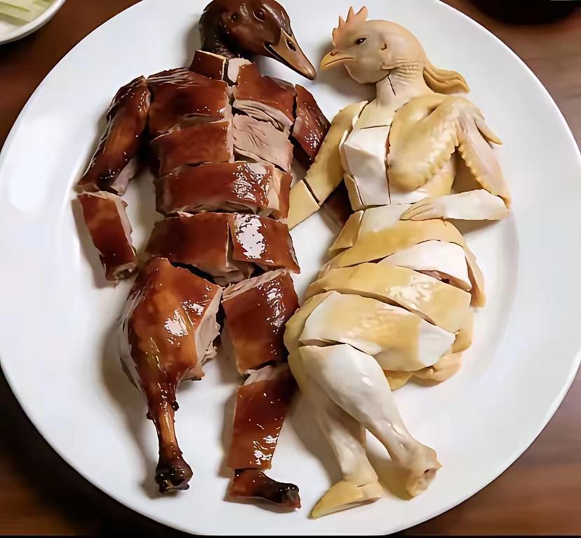 猜一猜,这是哪个地方的摆盘?这摆盘水平,你就说高不高吧! 我就想问一句,那些看过《外来媳妇本地郎》这部史上最长电视剧的人,看到这两幅图,有没有立马想起片头曲《生仔未必就是福》(也可能是片尾曲,不太记得了)那句“鸡同鸭讲——眼碌碌”(粤语)呢? 有知道这道菜菜名的吗?