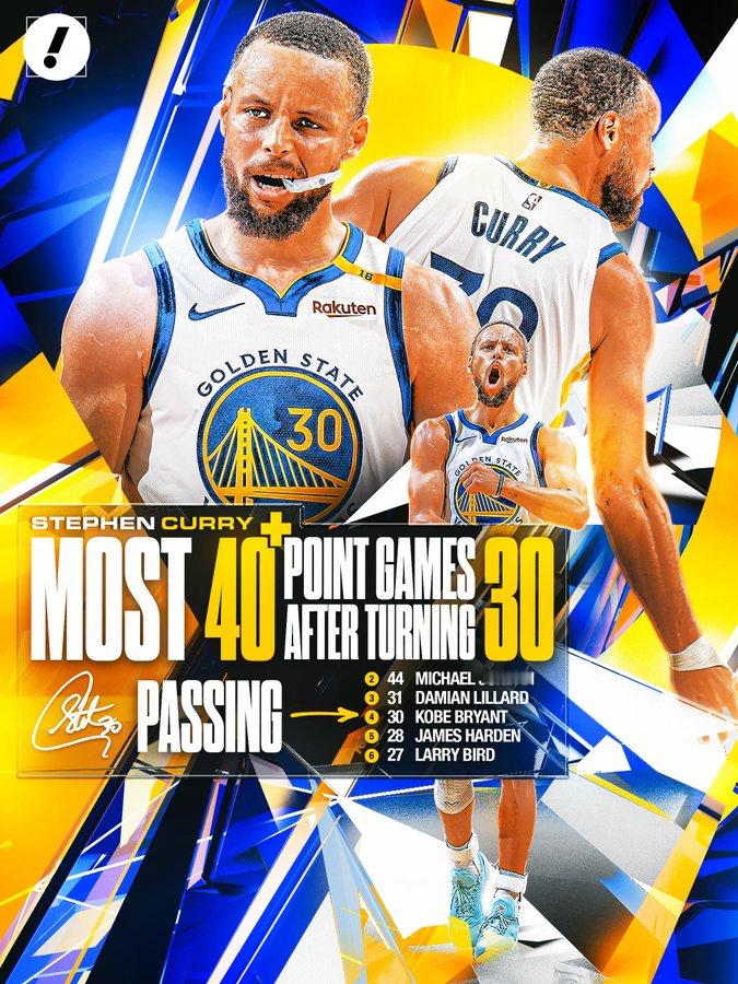 勇士vs开拓者 库里又投疯了 库里30岁后单场40+得分场次45次,超越乔丹,独享历史第一!