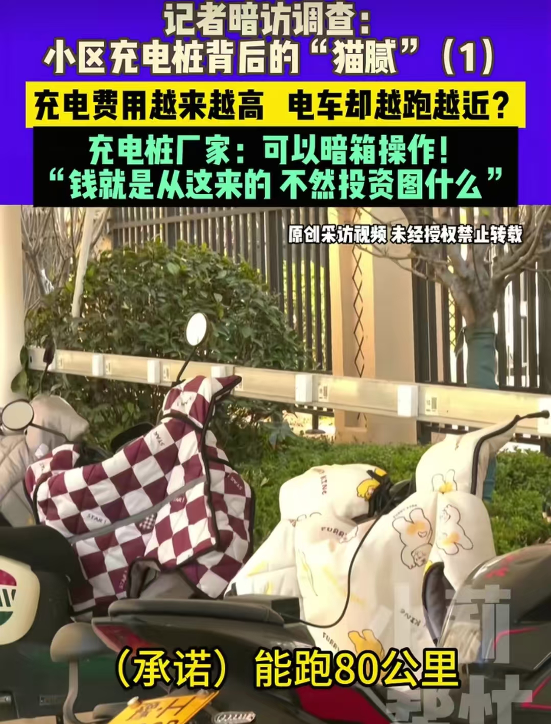 电瓶车充电桩的“猫腻”终于被曝光了!河南,女子花大几千买了个新电动车,商家承诺能跑80km,可是她充满电只能跑40多公里,她怀疑过电池,电动车质量,甚至怀疑天冷了电池耗电高了,从没怀疑过小区的充电桩,结果调查结果让她震惊不已!