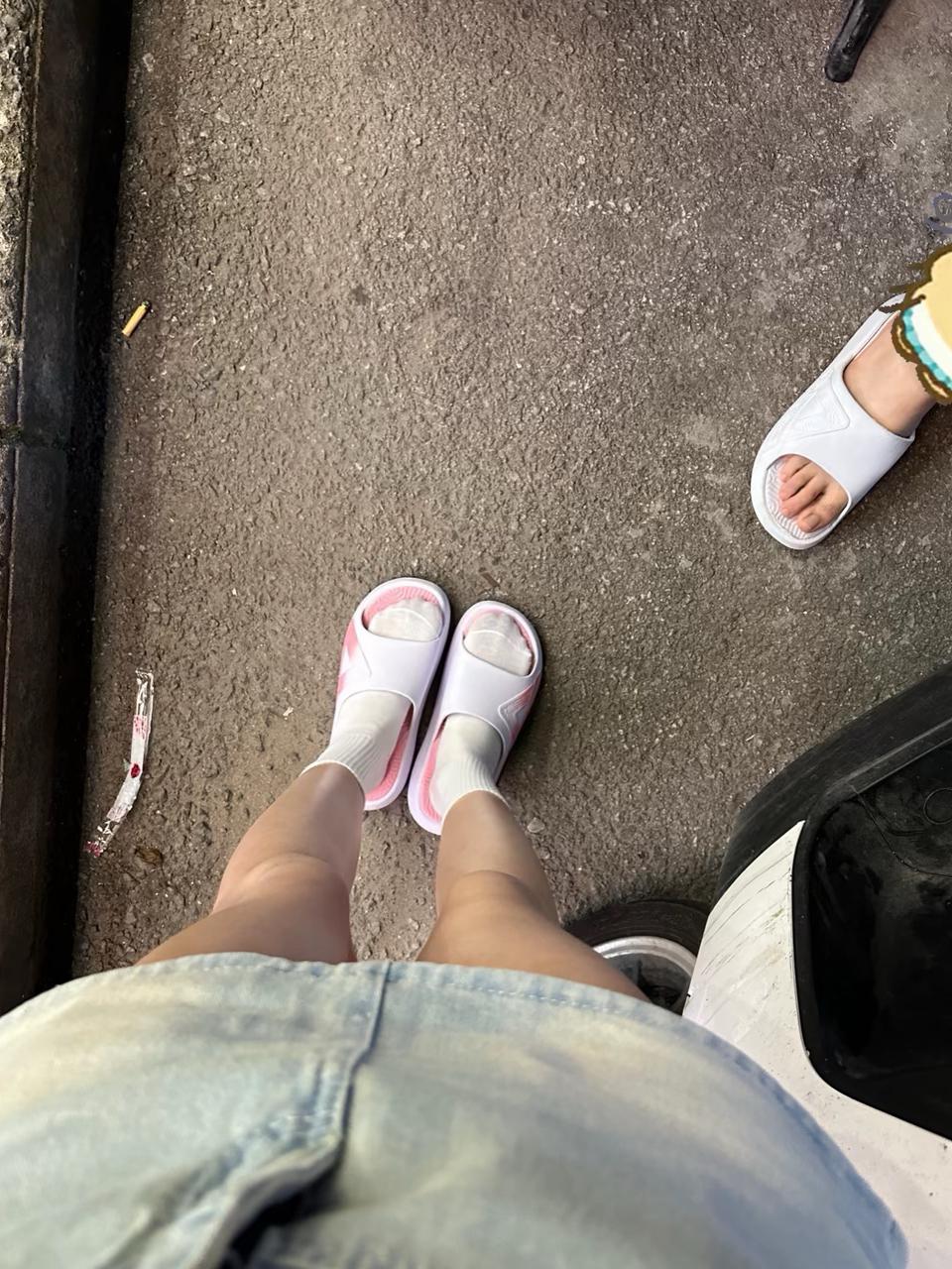 夏日清凉穿搭,白色拖鞋搭配牛仔短裤,轻松自在!🌞👗👟