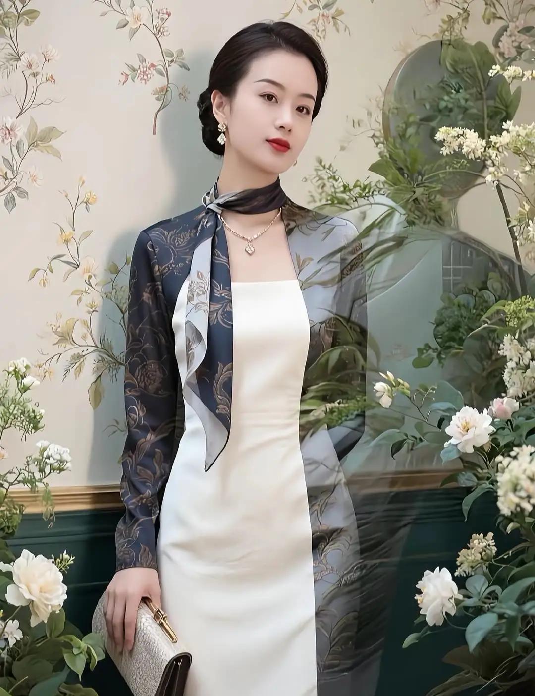 优雅气质,黑白撞色连衣裙,复古风穿搭