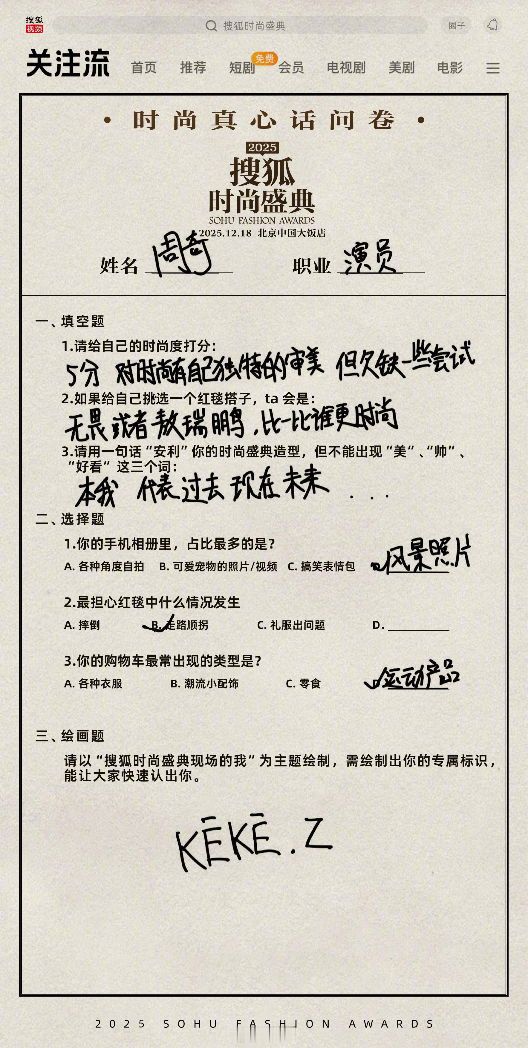 谁家明星做题参加盛典啊 原来参加时尚盛典还要做题?这创意拉满了!庞博写“时尚没有分数”超有态度,陈立农打99分留进步空间,郁可唯画向日葵、周奇写专属标识,明星们的答卷各有各的萌点~